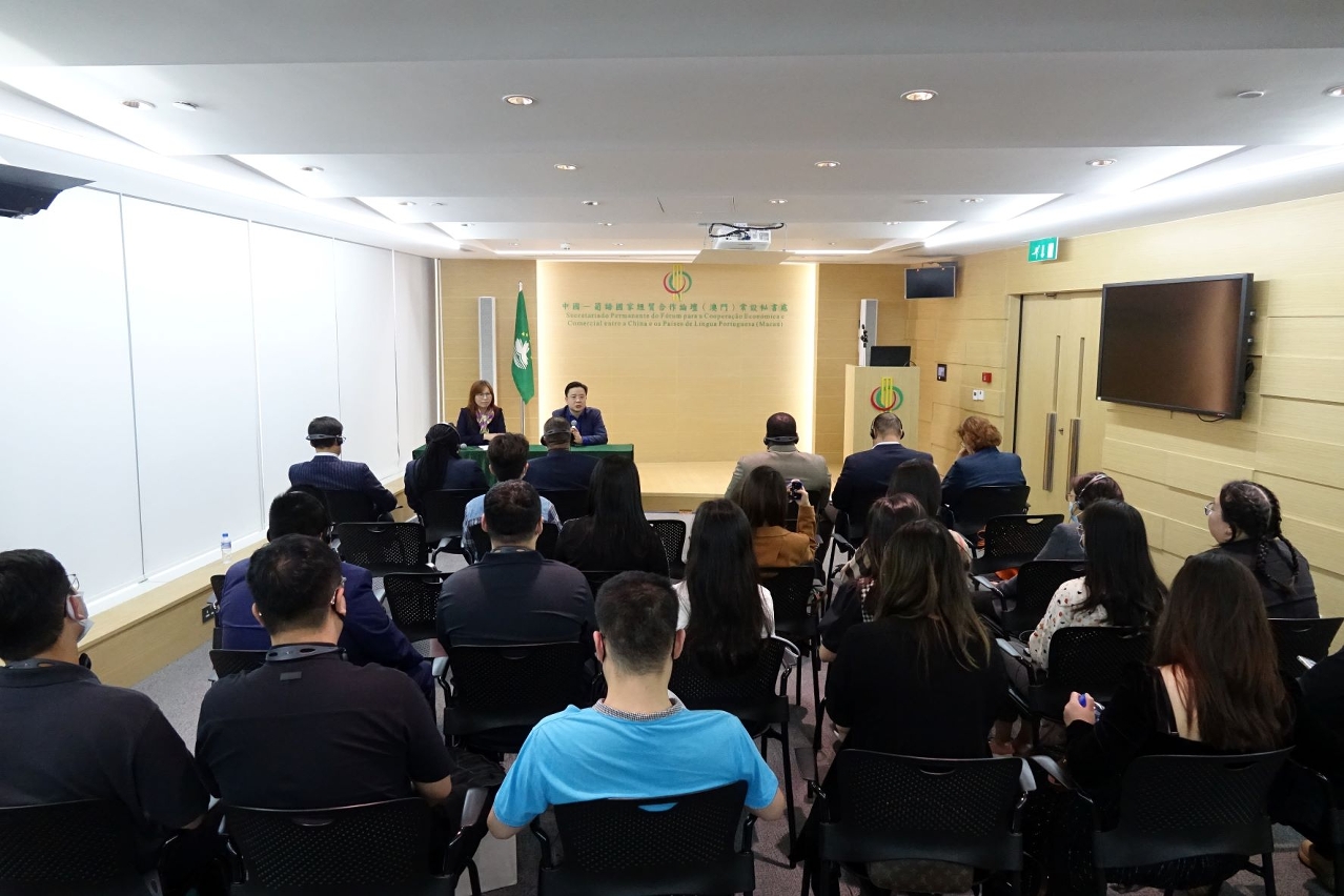 11月18日,澳門城市大學近20名工商管理碩士學員拜訪中葡論壇常設秘書處進行學習交流,了解中葡論壇日常工作,認識澳門作為中葡交流合作平台的作用。丁恬副秘書長、米格爾主任、莫苑梨主任及部份葡語國家派駐代表出席。