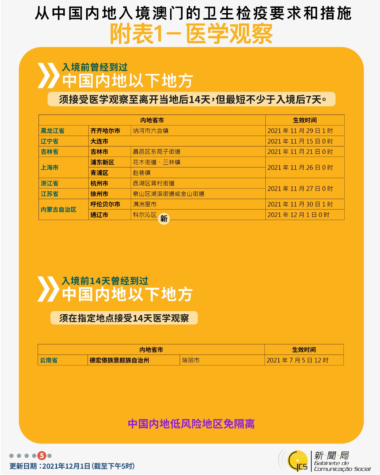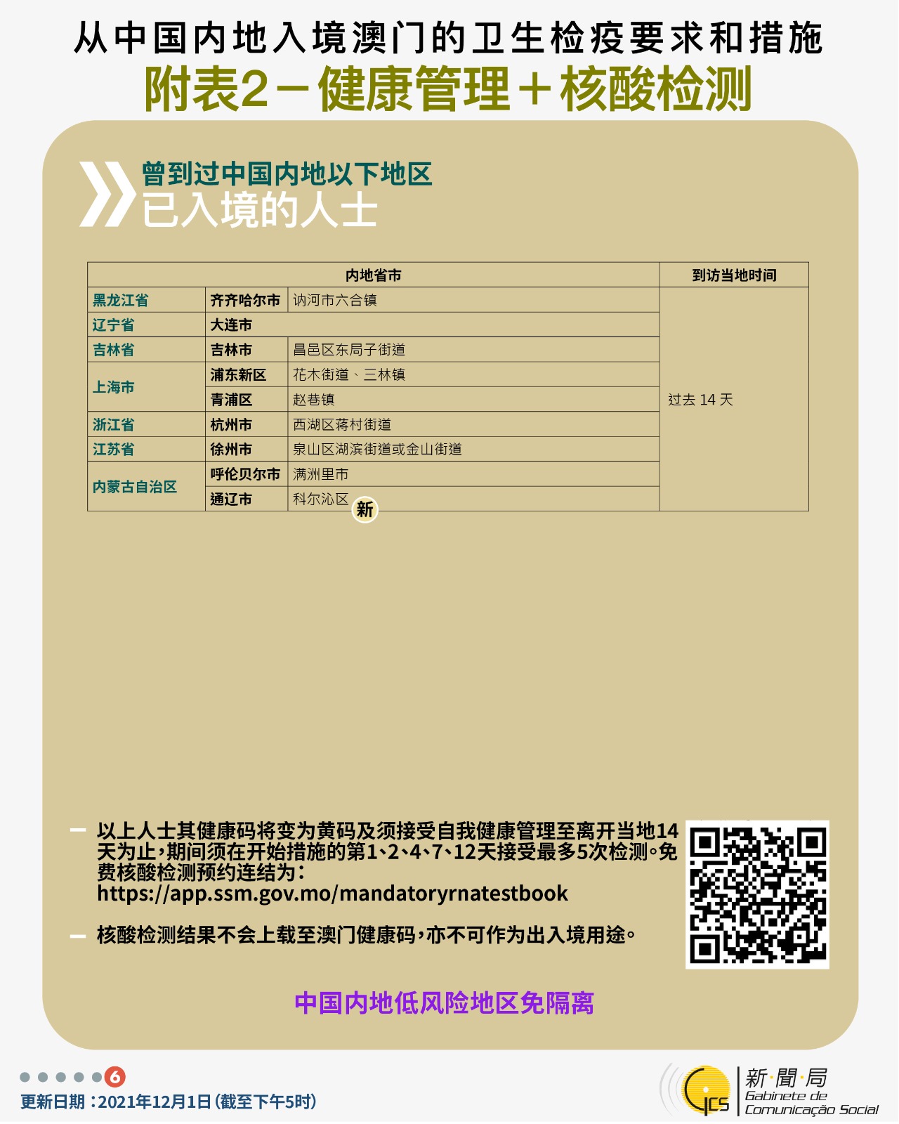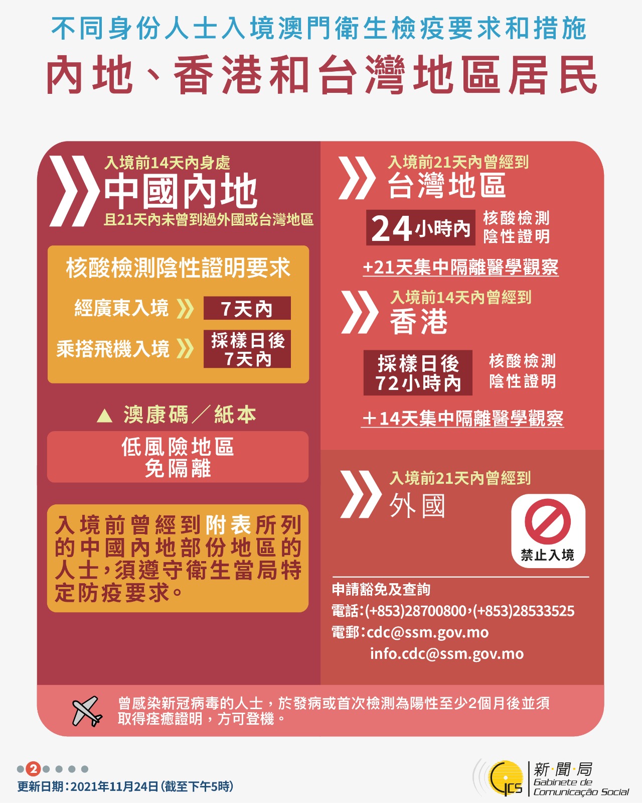 【圖文包】2021/12/1最新入境澳門衛生檢疫要求和措施