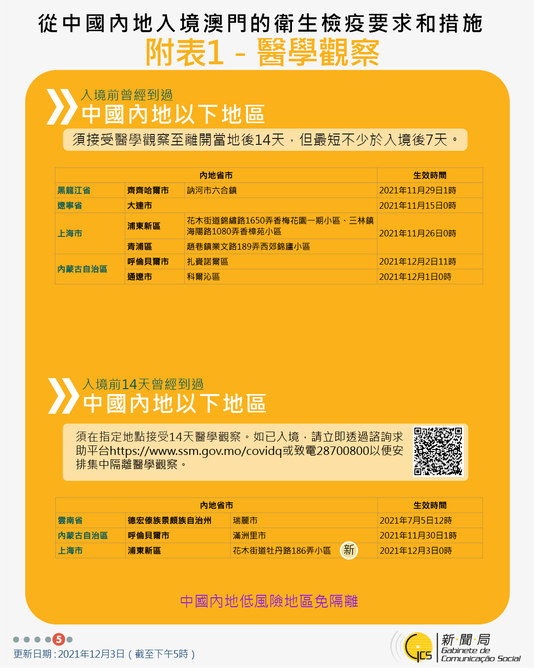【圖文包】2021/12/3最新入境澳門衛生檢疫要求和措施