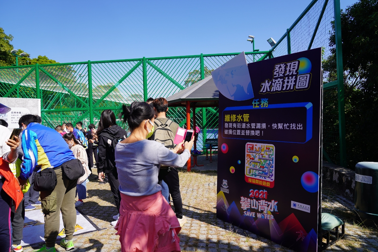 局方今年第六年舉辦“攀山背水”活動,讓參加者模擬山區居民打水後攀山越嶺回家的情況。為加強年青一代的參與,活動加入AR擴增實景技術,以生動活潑的方式,將節水訊息融入其中,當中更特設AR維修水管遊戲區,讓參加者從遊戲中學習定期檢查水管,以減少管網滲漏的意識。另外沿途設有AR“打卡位”,參加者可以拍照分享,向親朋傳播珍惜用水的信息。活動寓教於樂,吸引不少市民到場參與,當中不乏幼小和青年的身影。