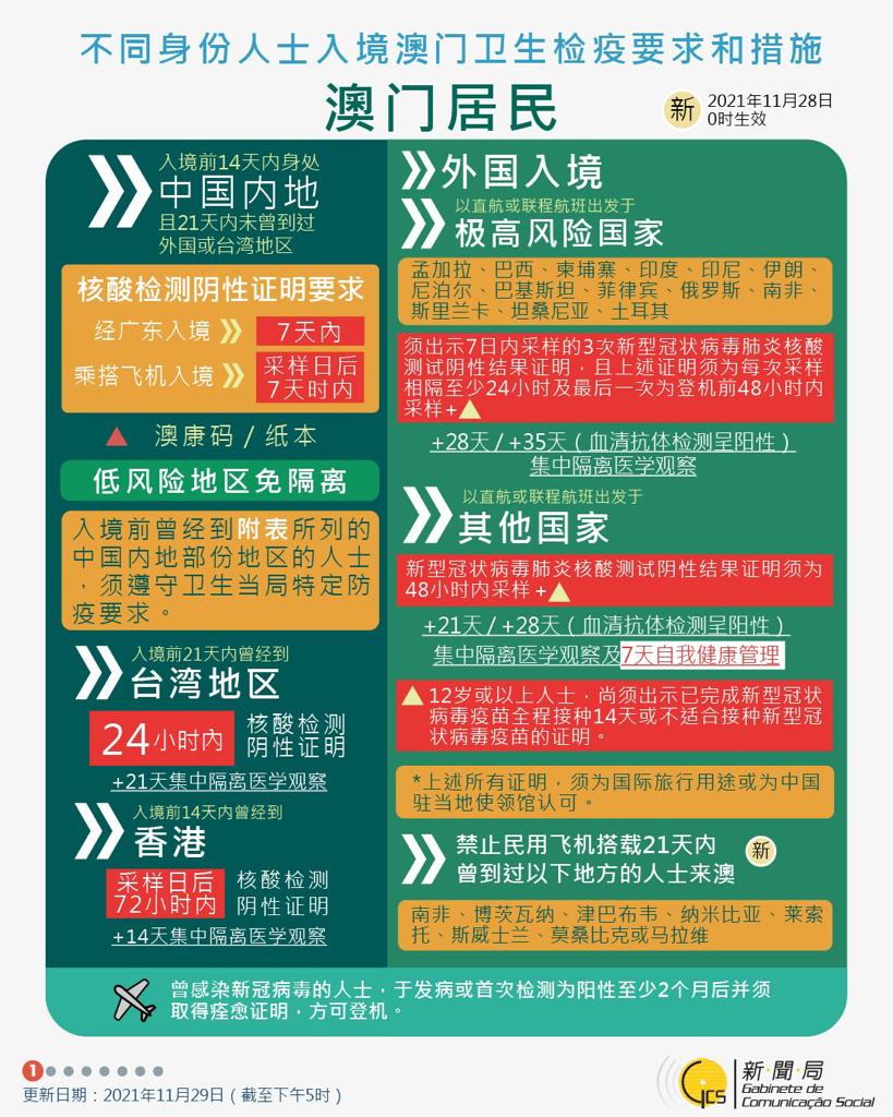 【圖文包】2021/12/15最新入境澳門衛生檢疫要求和措施