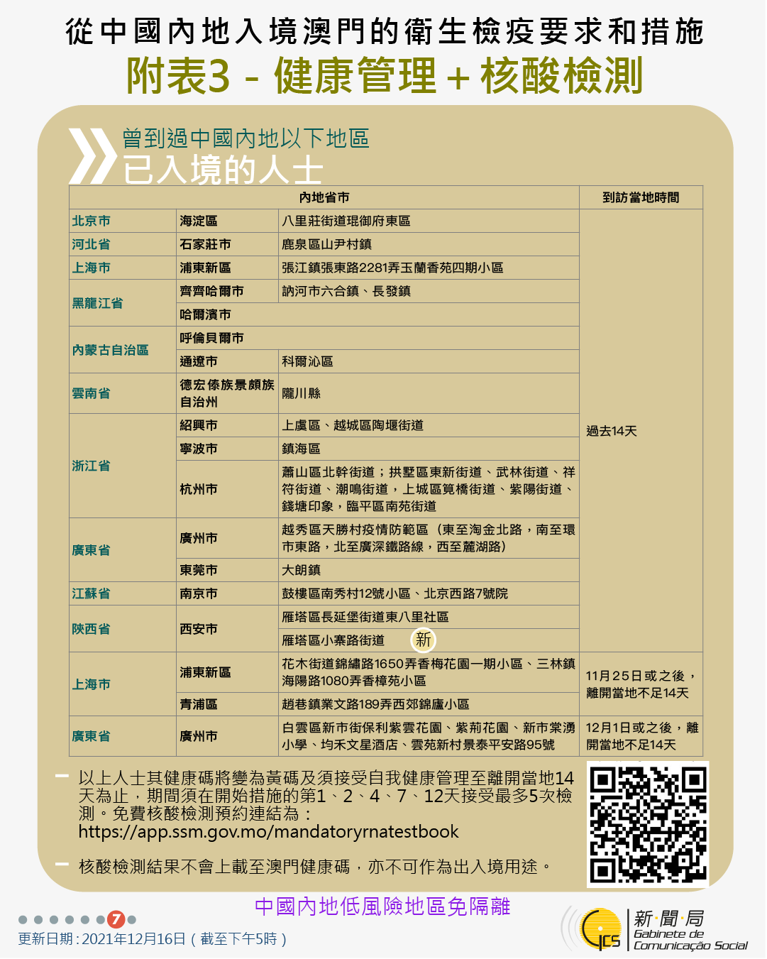 【圖文包】2021/12/16最新入境澳門衛生檢疫要求和措施