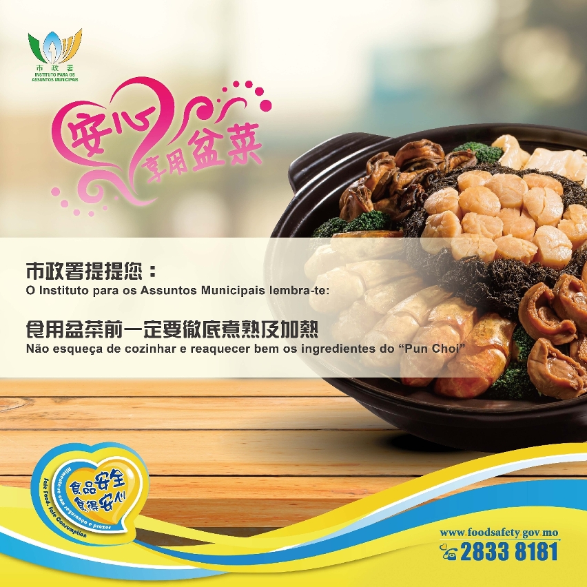 為了增加市民及業界對食品安全措施的認知,市政署於食品安全資訊網 www.foodsafety.gov.mo 設有“外賣訂餐要注意”專頁,提供相關食安指引、指南,以及圖文包、教育短片等宣教內容。同時,因應市民秋冬飲食習慣,亦設立“秋冬季節食品安全”專頁,提供具季節性的食安提示,歡迎市民及業界瀏覽。