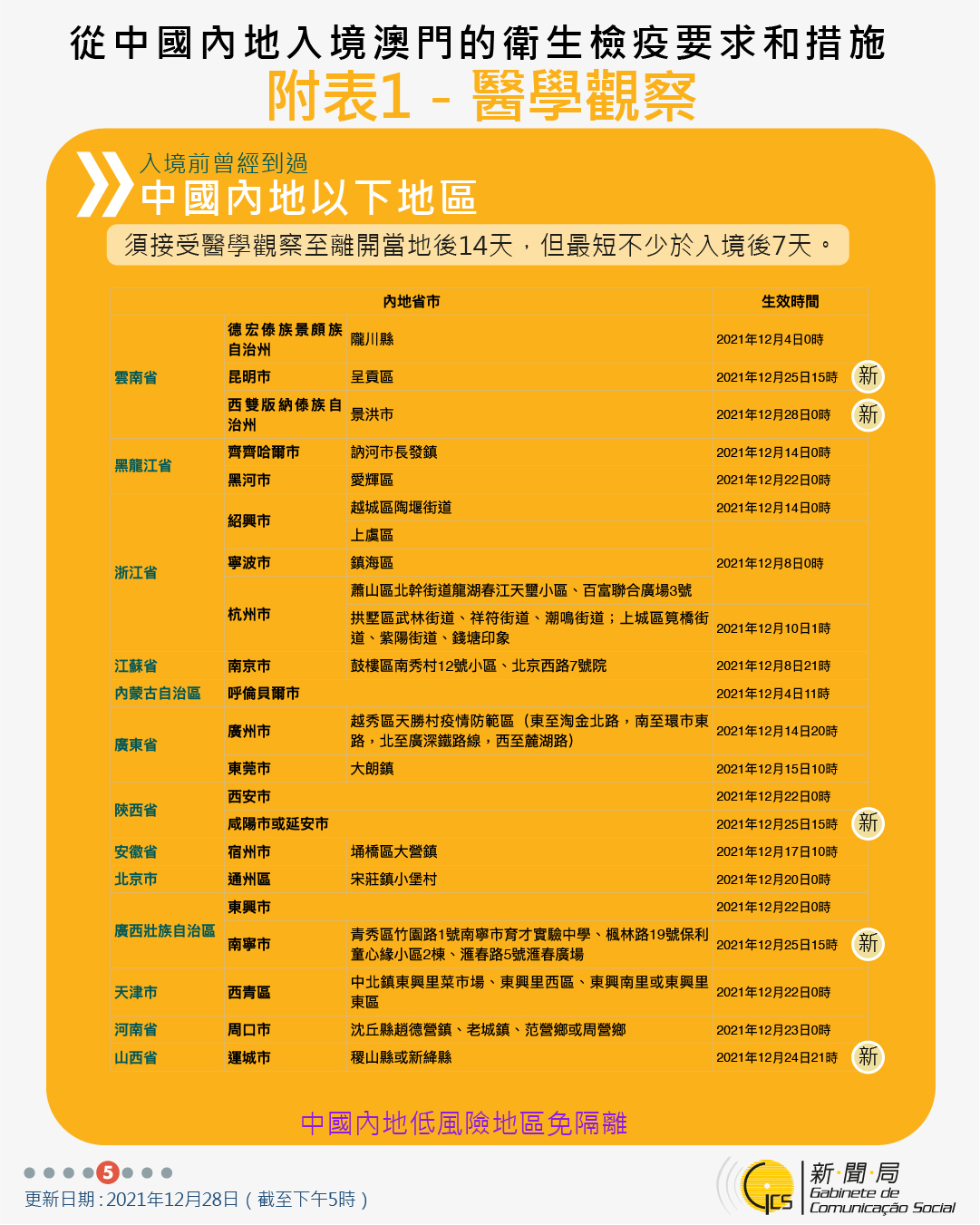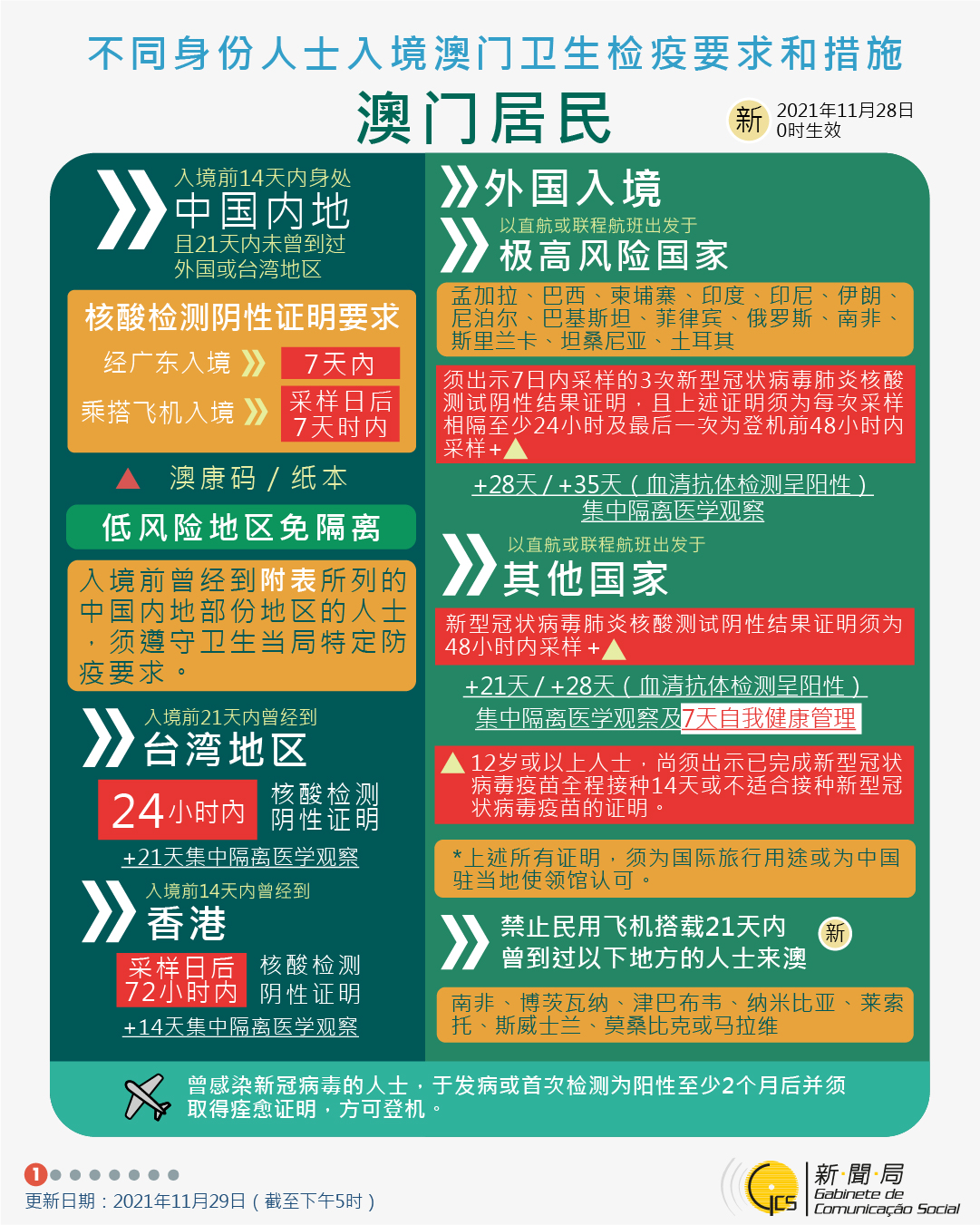 【圖文包】2021/12/28最新入境澳門衛生檢疫要求和措施