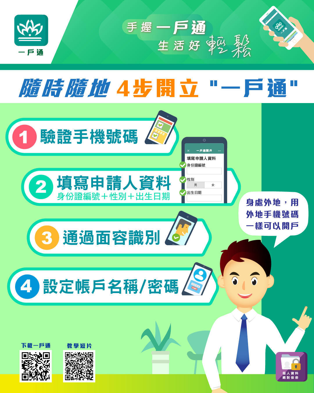 2022年1月1日早上9時起,市民可透過“一戶通”,一次過辦理社會保障基金、社會工作局及退休基金會的在生證明手續,全程無需親臨櫃枱。同時,當局將聯同多個社團和社服機構,於全澳各區設立臨時服務點協助市民開戶辦理。
