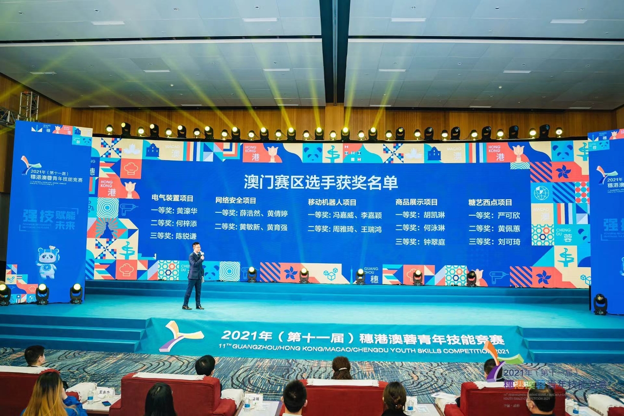 「2021(第十一屆)穗港澳蓉青年技能競賽」於日前(12月19日)圓滿結束,主辦城市成都在中國西部國際博覽城舉行了閉幕儀式,協辦城市廣州、香港、澳門通過線上直播同步參加了閉幕儀式。本屆賽事採取四地線下辦賽與線上直播相結合的方式,首次實現賽事全程網路直播,四地按照世界技能大賽標準,評出各賽區的獲獎選手。六十四位來自廣州、香港、澳門、成都的精英選手,經過激烈比拼後,各個獎項經已塵埃落定(本澳賽區得獎名單見附表)。勞工事務局為鼓勵參賽選手,按各項目成績最優的本澳青年選手發放$5,000澳門元的獎金。