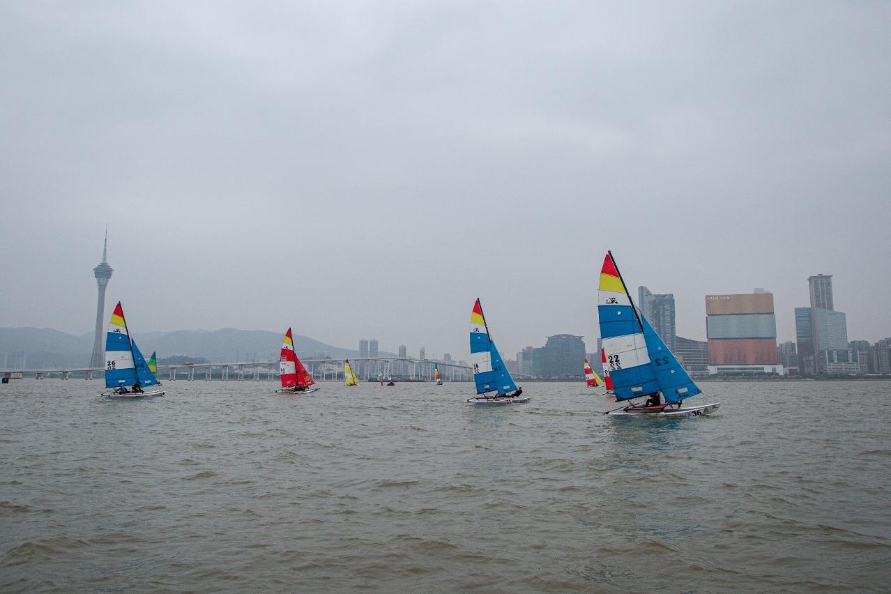 「澳門盃國際帆船賽」今日舉行了三場賽事,首日賽事中取得兩場勝仗的木屋燒烤隊在今日第一場賽事中繼續保持優勢,但在餘下的兩場就被其他勁敵追上,當中廣西北海老男孩夢之隊的表現最為突出,取得一場勝利並在其餘兩場賽事取得前三名,奪得單日冠軍。總成績方面,木屋燒烤隊仍以總分10分排名第一,廣西北海老男孩夢之隊緊隨其後,第三名是贛州虔尚匯白浪帆船隊。