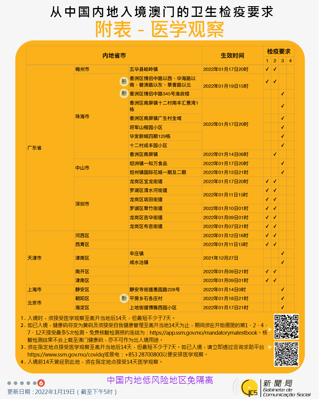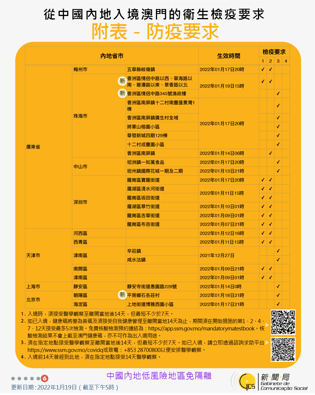 【圖文包】2022/1/19最新入境澳門的衛生檢疫要求