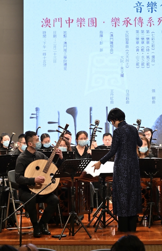 澳門中樂團2月23日在澳門理工學院舉行大學音樂會,為師生帶來樂傳承系列“青春年華”的音樂盛宴。在指揮彭菲的帶領下,澳門中樂團精彩呈獻《七彩之和》(選段包括:《綠‧風之歌》、《藍‧水之歌》、《黃‧山之歌》)、《澳門隨想曲》,以及大阮協奏曲《天天向上》等名曲,並對表演樂曲進行賞析,引領師生進入中樂世界,感受中國音樂的藝術魅力。音樂會吸引師生百多人出席欣賞,反應熱烈。
