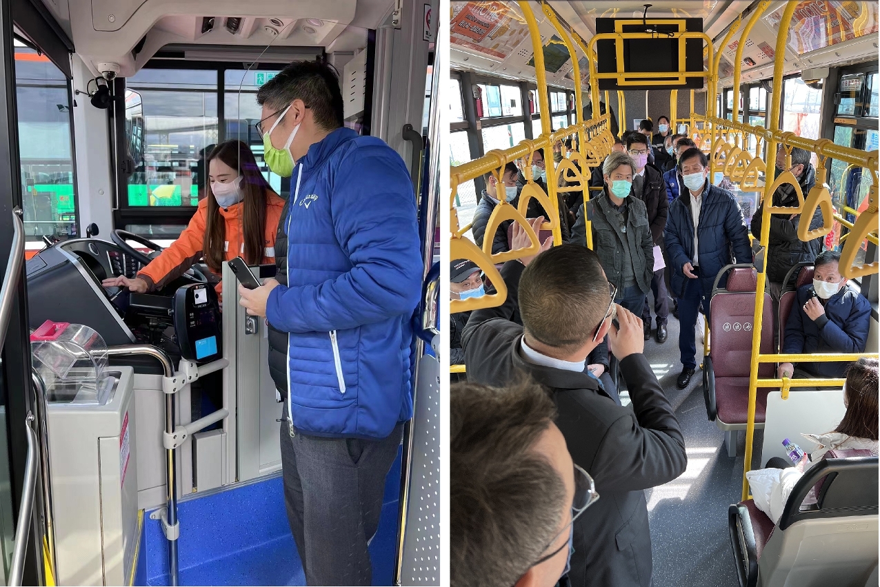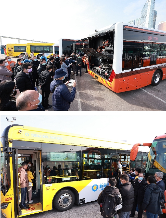 交通諮詢委員會昨日(24日)參觀兩巴及六間博企的新能源巴士,公司代表重點介紹節能減排效益、無障礙設施、一級踏步的低地台設計、電子路線顯示屏,以及環視系統和盲區偵測系統的安全保障裝置。