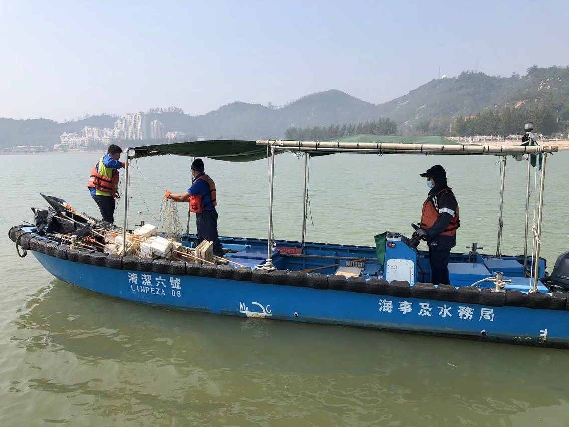 海事局人員昨日在日常巡查時,發現有漁船正在外港航道近岸浮標及氹仔航道進口浮標一帶落網捕魚,該地點為航道出入口附近,有關捕魚作業違規並會影響其他船隻通航,海事局人員即時阻止,並其後在上述海域及黑沙海灘海面清理及沒收了阻礙通航的共約1,000米漁網和30支漁標。
