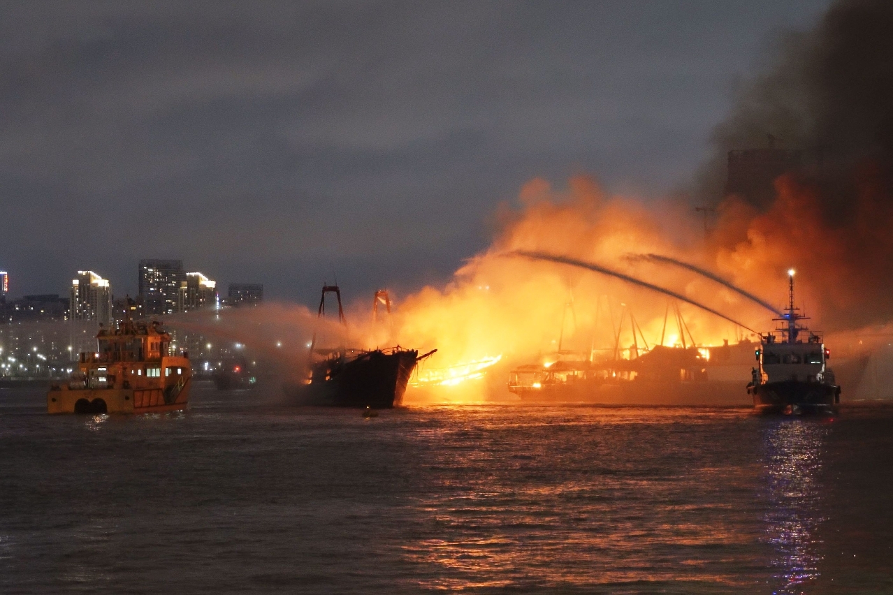 晚上約7時,16浦對開海面的內港錨地,有一排約十多艘錨泊在一起的漁船,其中央的漁船首先起火,其後火勢漫延至相鄰漁船,火警共涉及6艘漁船。海事局及海關發現火警後,派船於數分鐘內抵達現場灌救,並陸續派出合共24艘船隻、約150名人員全力救援。海關潛水隊及無人機隊亦有到場協助,內地也派出6艘執法船隻到場支援。救援期間火勢猛烈,並發生約6次爆炸,加上正值退潮和附近有較多船隻走避,增加救援難度。其中一艘漁船的火勢基本熄滅後,海事局安排拖輪把漁船拖回碼頭岸邊處理,過程中漁船一度死灰復燃。火勢約於2.5小時後基本受控,但仍不時死灰復燃,海事局和海關持續向漁船射水降溫,並會在條件許可時陸續把漁船拖回岸邊處理,預計救援工作需要持續一段時間。
