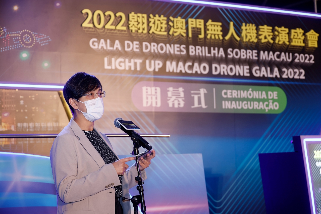 經濟財政司司長李偉農、經濟財政司司長辦公室主任辜美玲、旅遊局局長文綺華、民航局局長陳穎雄、體育局副局長劉楚遠、市政署市政管理委員會委員林紹源、地球物理暨氣象局局長梁永權等出席“2022翱遊澳門無人機表演盛會”開幕式。