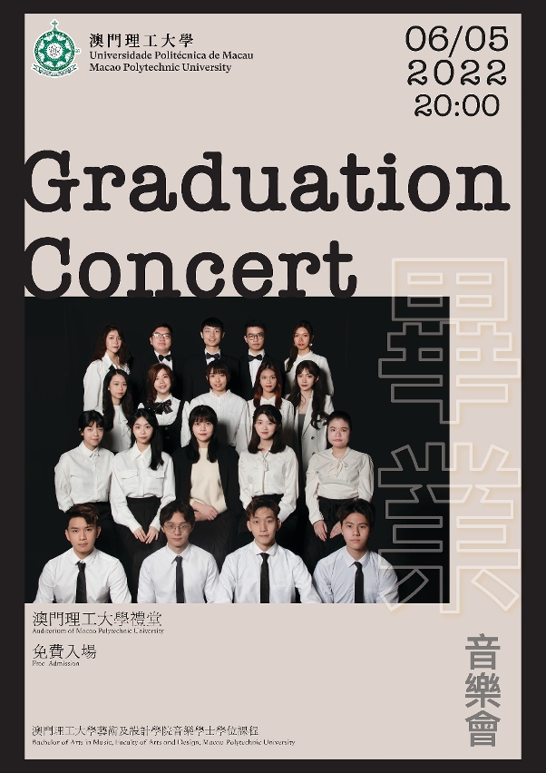 澳門理工大學藝術及設計學院“畢業獨奏音樂會”和“班級畢業音樂會”,對外開放,免費入場。為配合澳門特區政府衛生局防疫指引,入場人士必須佩戴口罩、接受體溫探測,並掃描行程記錄的場所二維碼(簡稱場所碼)及出示當天有效的個人健康碼。歡迎有興趣人士前來欣賞音樂學子的精彩呈獻,詳請可致電85993243查詢。