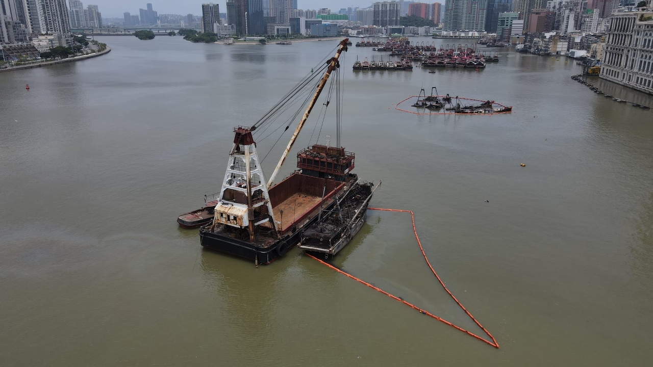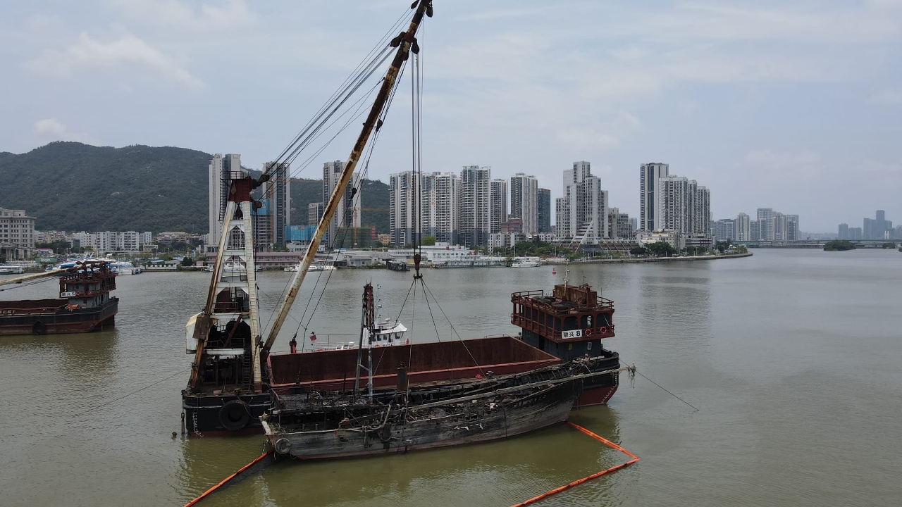早前內港的漁船火警六艘涉事漁船中,一艘漁船由海事局救援船拖回岸邊,有一艘漁船隨水漂流至內港客運碼頭對開的一段內港航道並下沉,另有四艘相連漁船在內港錨地下沉。海事局全力協助下沉漁船的打撈和善後工作,安排打撈船隊到現場進行評估及擬定計劃,並於今日早上開始打撈作業。