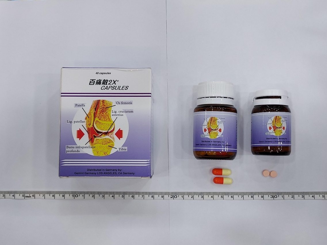 根據香港衞生署的公告,產品「百痛敵2X」被摻雜有西藥成份「吲哚美辛」(Indomethacin)及「地塞米松」(Dexamethasone),該署呼籲居民不要購買及使用上述產品。根據紀錄,藥物監督管理局並沒有批准上述產品進口及投放本澳市場。