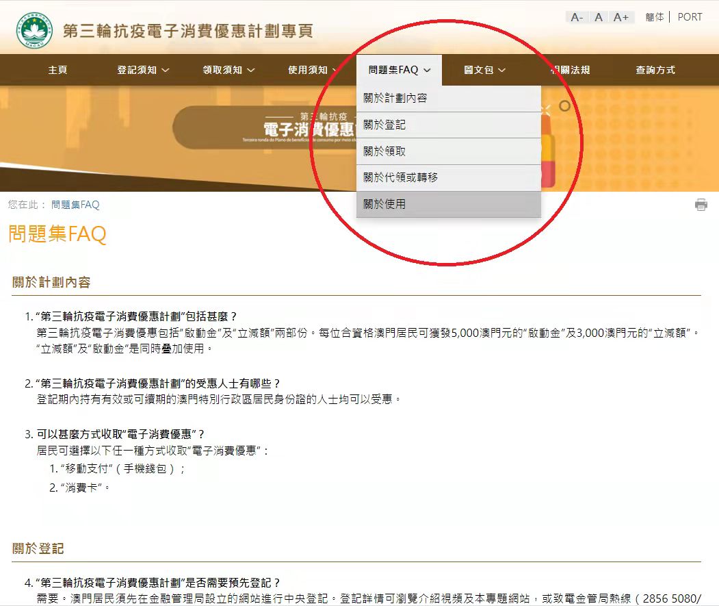 為讓居民更容易了解優惠的各項資訊,“電消計劃”專頁持續更新並作優化。當中的“問題集FAQ”專區(https://www.dsedt.gov.mo/econsumo/zh-hant/faq_consumer.jsp#a5 ),匯集超過70條涉及優惠登記、領取及使用的常見問題,當中關於使用的有34條,方便居民細閱。