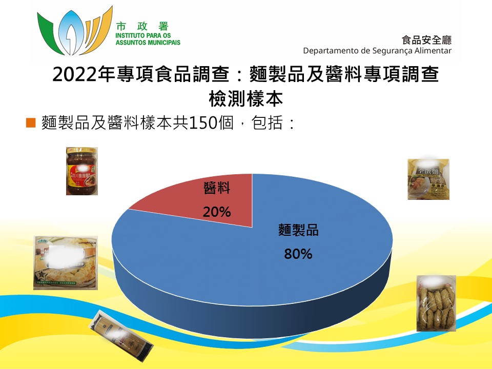 麵製品及醬料為市民經常食用的食品,若在原料採購、加工工藝、貯存條件等方面存在不當,便可能會受到真菌毒素、重金屬污染或含有過量防腐劑。就此,市政署開展了麵製品及醬料專項食品調查,於本澳超級市場、百貨公司、製麵廠等店舖抽取一百五十個麵製品及醬料作檢測。樣本類型包括全蛋麵、意大利粉、烏冬、葱抓餅、拌麵醬、冷麵汁等,檢測項目包括重金屬、真菌毒素及防腐劑。檢測結果顯示,除較早前已公佈的一個拌麵醬樣本含過量重金屬外,其餘樣本的檢測結果均未見異常。市政署早前已即時跟進不合格樣本個案,包括通知涉事商戶有關化驗結果、要求有關零售商及生產商停售問題產品等。
