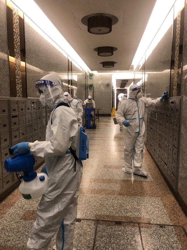 市政署對確診病例居所大廈加強清潔消毒(氹仔花城利盛大廈)