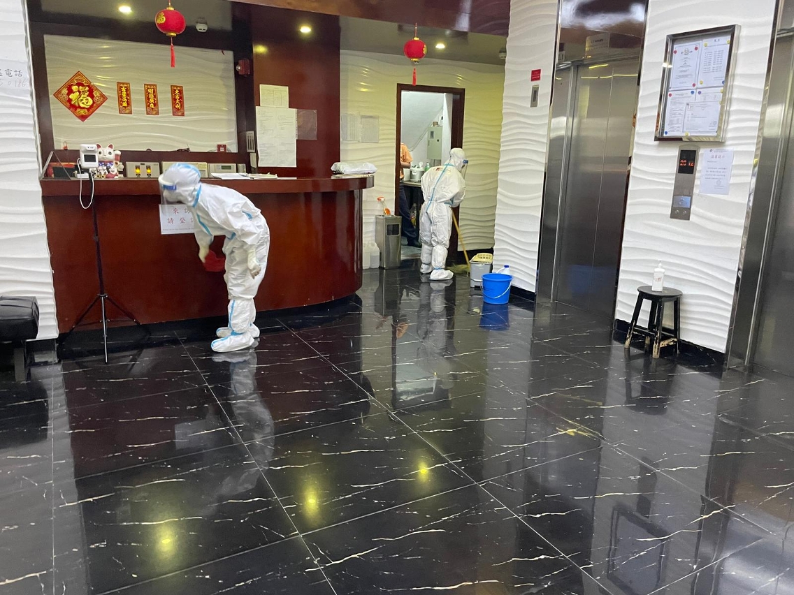 市政署對確診病例居所大廈加強清潔消毒(林茂塘都匯)