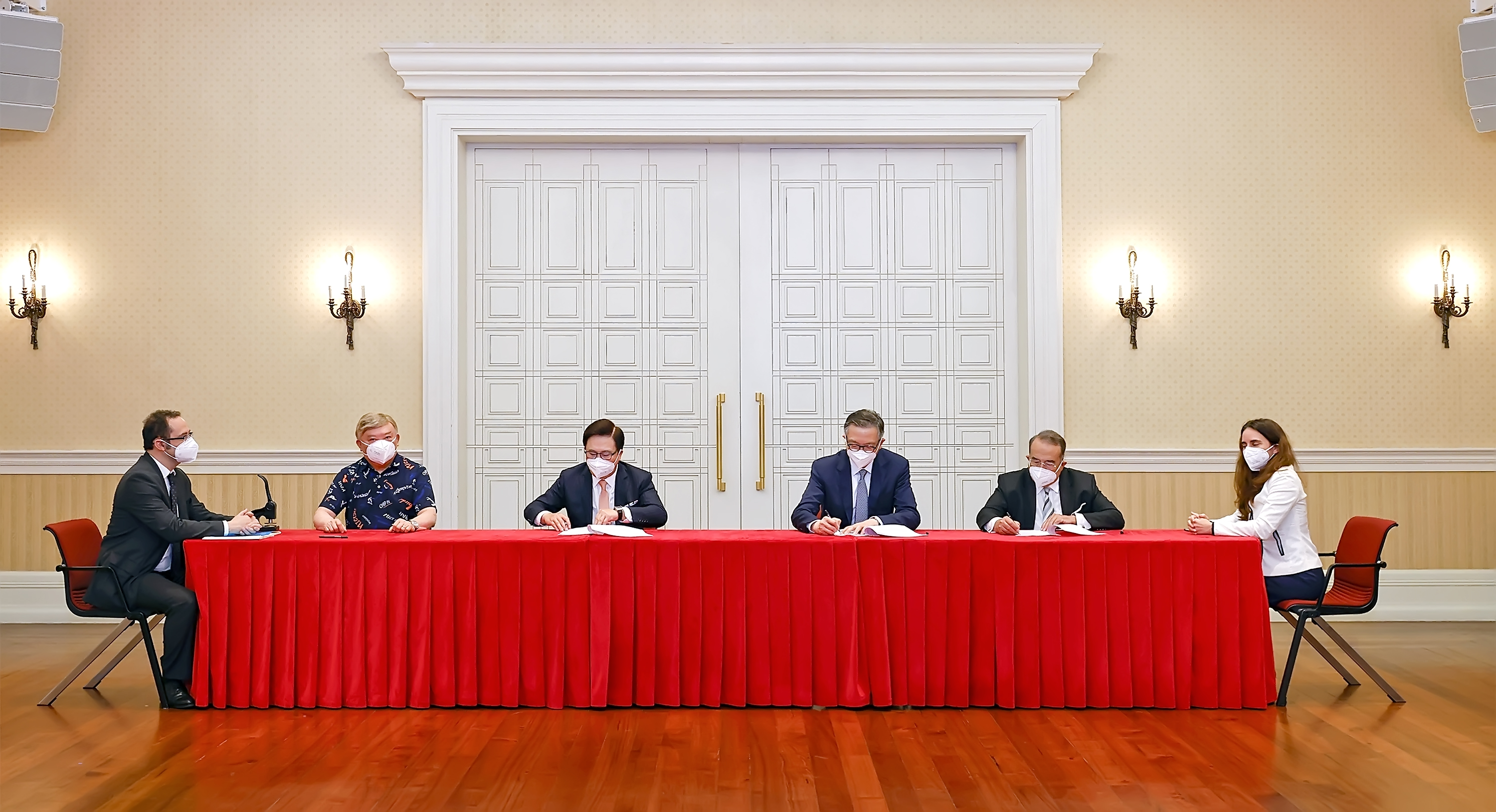 行政長官賀一誠代表澳門特別行政區於今(23)日下午在政府總部,分別與澳娛綜合度假股份有限公司、永利渡假村(澳門)股份有限公司及銀河娛樂場股份有限公司的代表,簽署澳門特別行政區娛樂場幸運博彩經營批給合同的修改合同。隨後,在博彩監察協調局代表見證下,上述三間公司分別與美高梅金殿超濠股份有限公司、新濠博亞(澳門)股份有限公司及威尼斯人澳門股份有限公司的代表,簽署娛樂場幸運博彩經營轉批給合同的修改合同。