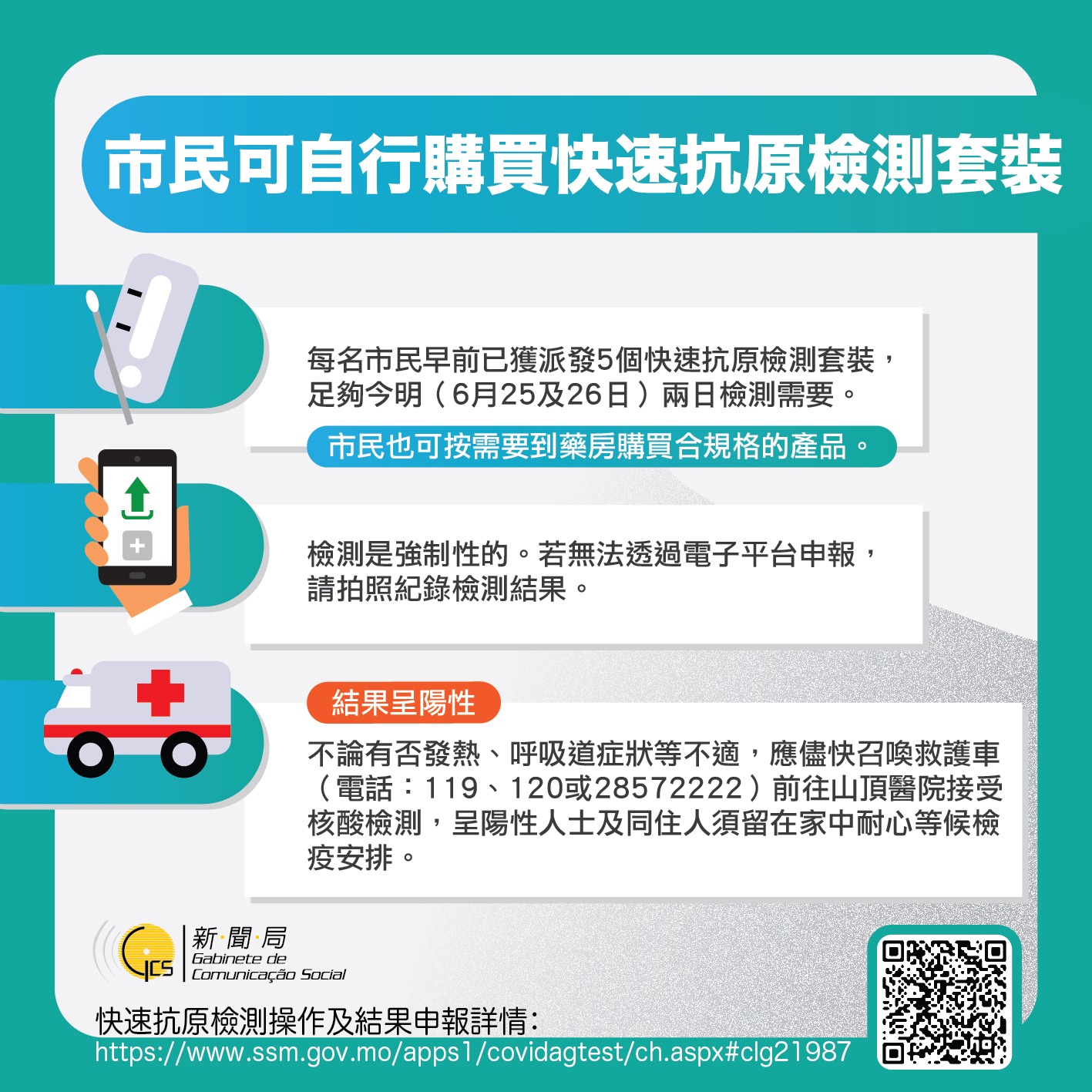 全澳市民於今、明兩天需各做一次自我快速抗原測試