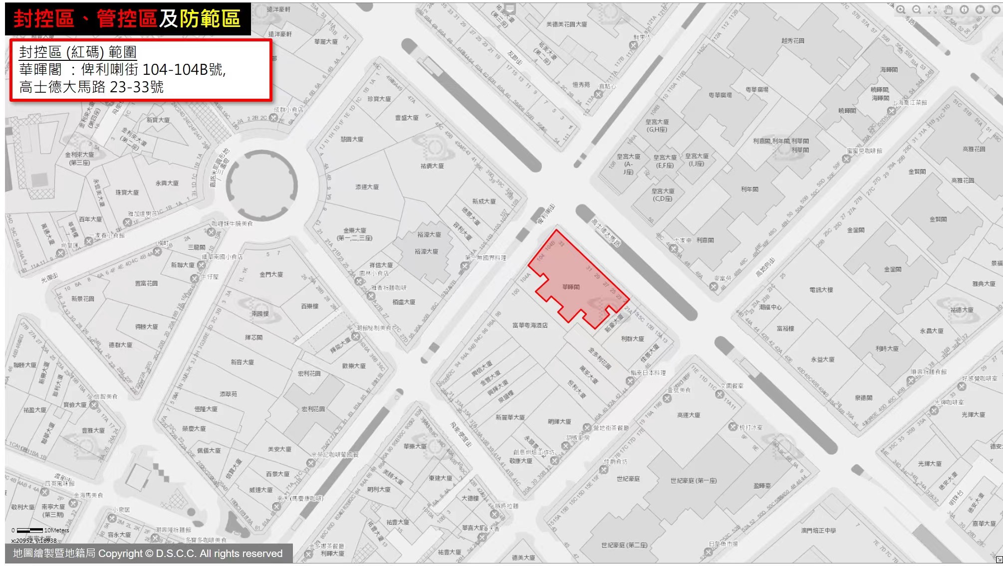 華暉閣:俾利喇街 104-104B號,高士德大馬路 23-33號 |