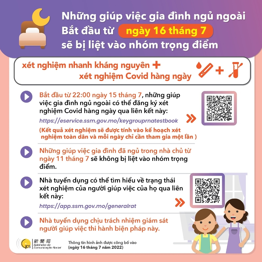 【圖文包】在外留宿的家務工作人士7月16日起列重點人群(越南語)