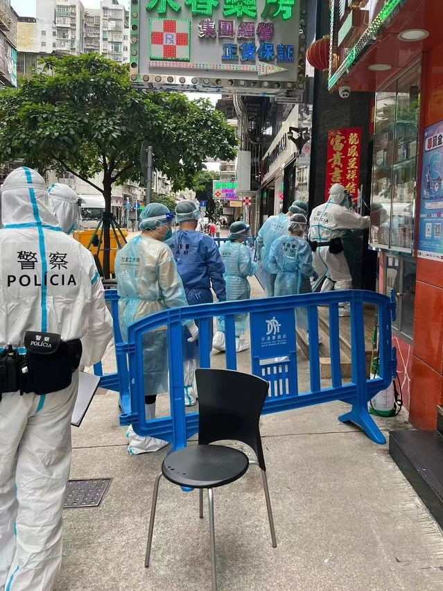 市政署於昨(18日)晚已對怡南大廈的公共空間進行大型清潔及消毒工作,以及在防控區內搭建臨時核酸採樣站及前線協調站。如對防疫措施有任何查詢,可致電新型冠狀病毒感染應變協調中心查詢熱線28700800。