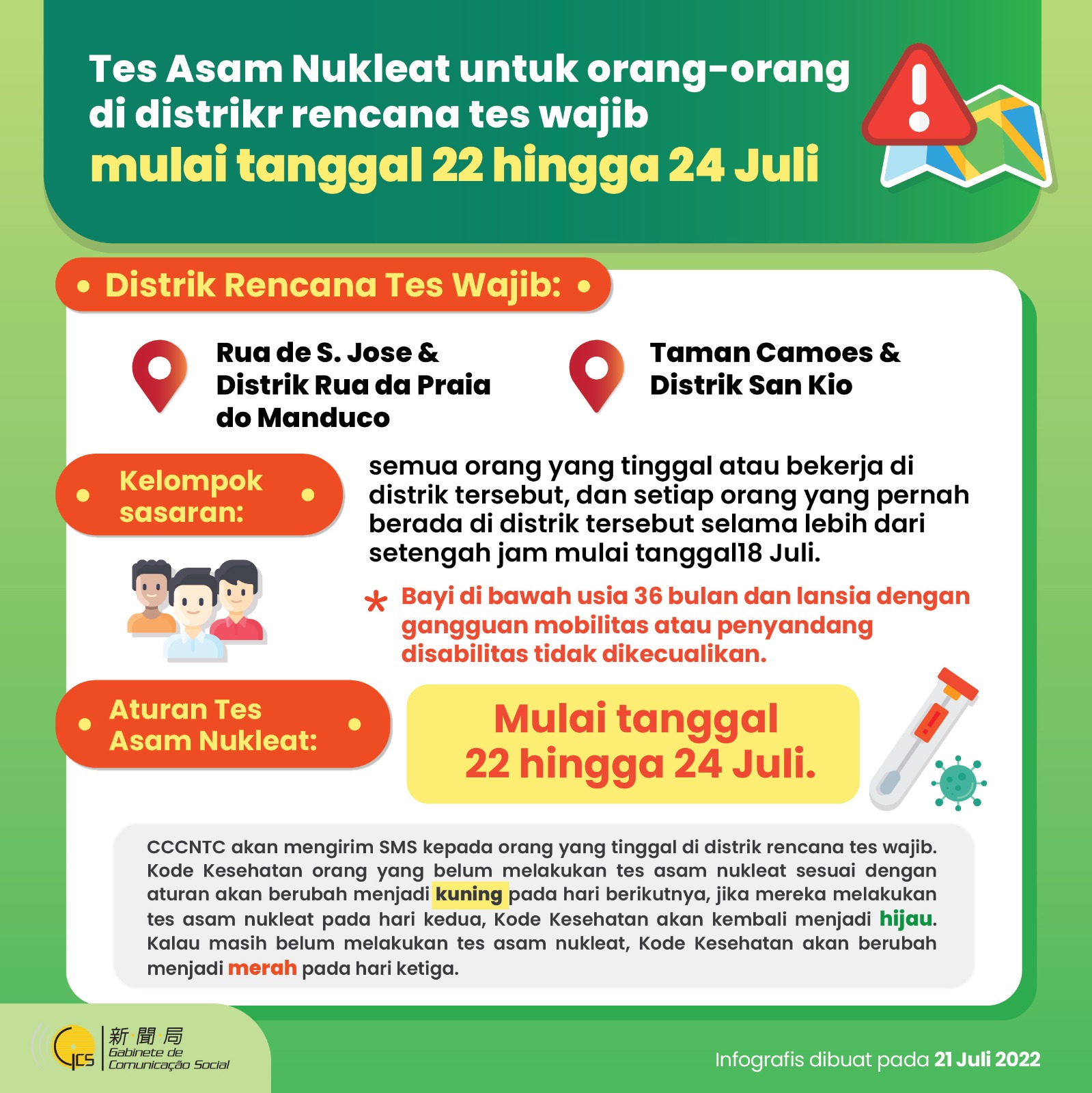 7月22日至24日重點區域內人員核酸檢測(印尼語)