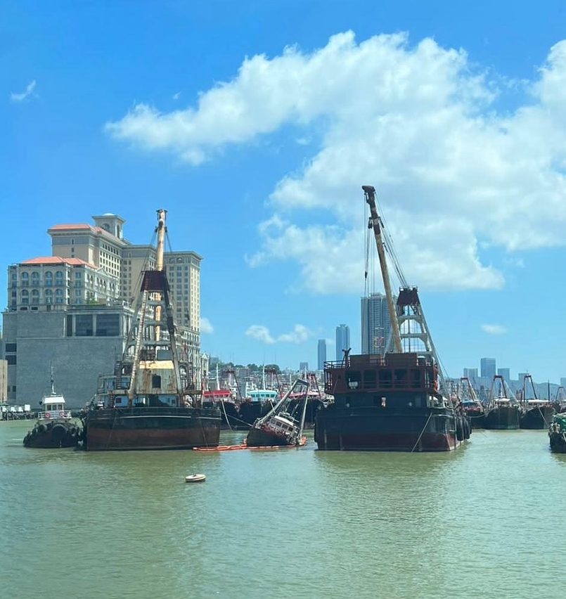 起吊作業期間,海事局在現場戒備的船隊發現近灣仔的內地海域內有一艘香港註冊的漁船入水後迅速沉沒,即時在現場設置吸油棉條防止油污擴散,以及放置了警示標誌,並通報珠海相關部門跟進處理。相關船東稍後亦會安排起吊船隊吊起漁船。局方已提醒漁民團體,尤其木質漁船的船東,應定期檢查和留意漁船的船體結構及安全情況,採取適當措施預防事故發生。