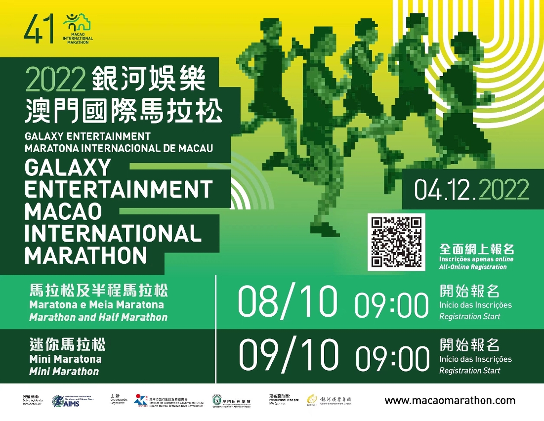 由體育局及澳門田徑總會主辦,銀河娛樂集團冠名贊助的「2022銀河娛樂澳門國際馬拉松」將於本年12月4日(周日)舉行,賽事組委會於今日(21日)舉行新聞發佈會公佈賽事詳情、報名安排以及賽事冠名贊助商資料。