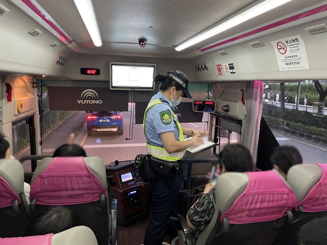 查車方面,共截查33輛車輛,合共檢控5宗違例,涉及行駛中使用流動電話及駕駛資格未滿一年所駕車輛沒有安裝識別標誌。