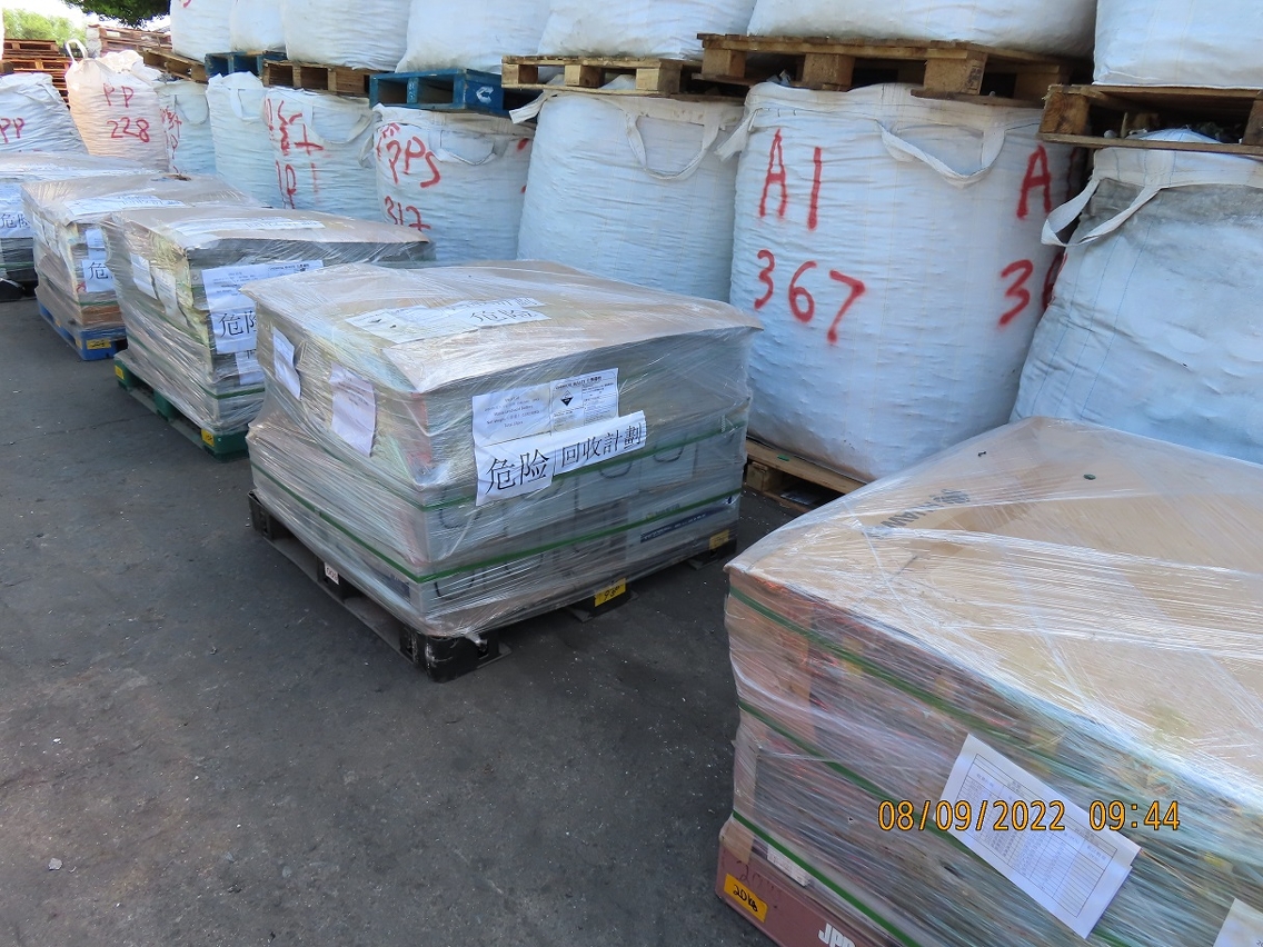 環保局所委託的承判公司將收集到的廢舊電池進行預處理後,分別在2018年12月、2021年6月,以及今年9月合共將兩批一次性電池(約57,750公斤)和一批鉛酸電池(約43,900公斤)安排在澳門裝箱入櫃,並按照《巴塞爾公約》進行有關越境轉移程序及工作,透過海運經香港港口轉運到日本或韓國作後續的再生及資源化處理,餘下的廢舊電池則暫存在承判公司的廠房內,留待下次安排轉運。