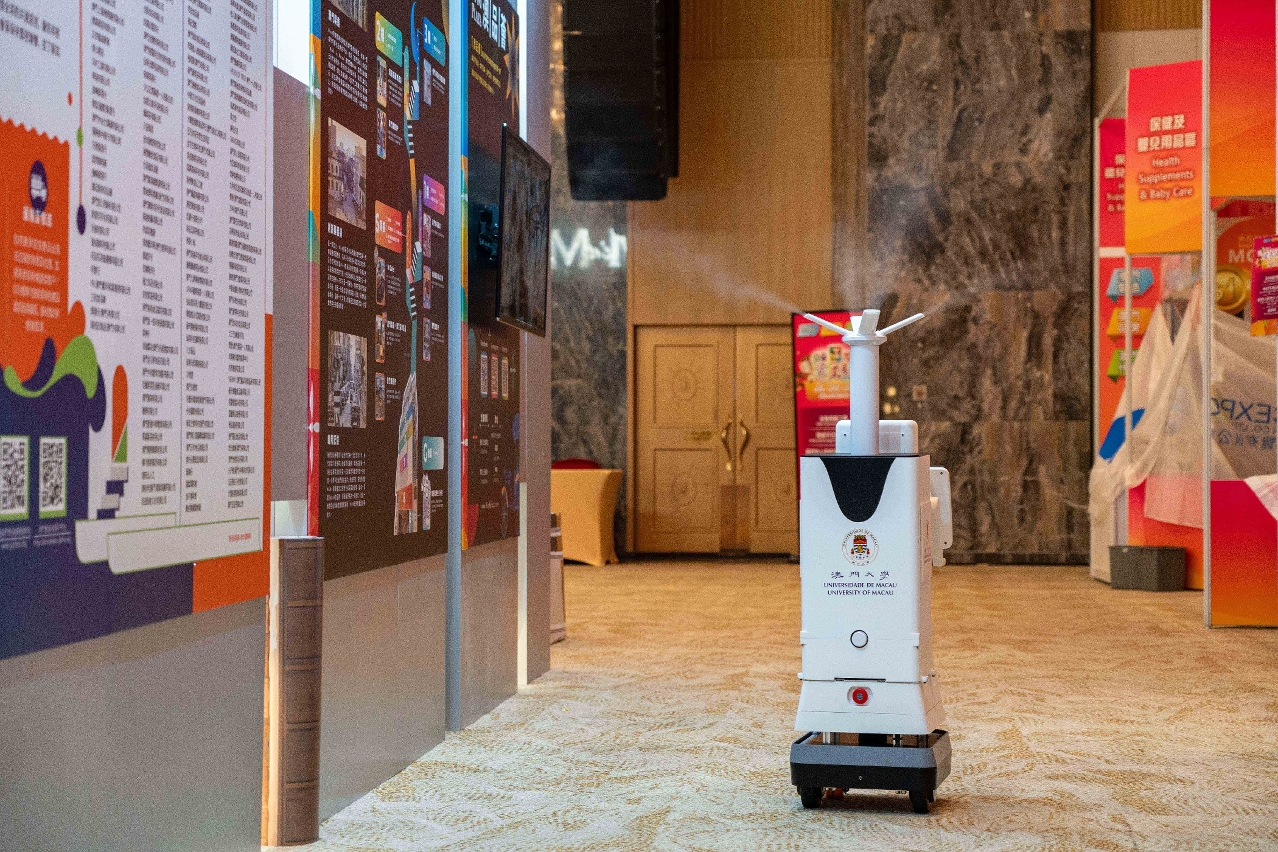 澳門大學16項優秀科研成果今(30)日在“第8屆澳門工展會”亮相,當中多項成果斬獲國際或全國性獎項,並已取得專利,獲得一眾嘉賓和與會者的高度關注及肯定。此外,其中一項成果“消毒機器人”還擔任會場消毒滅菌工作,體現科研創新的應用價值。