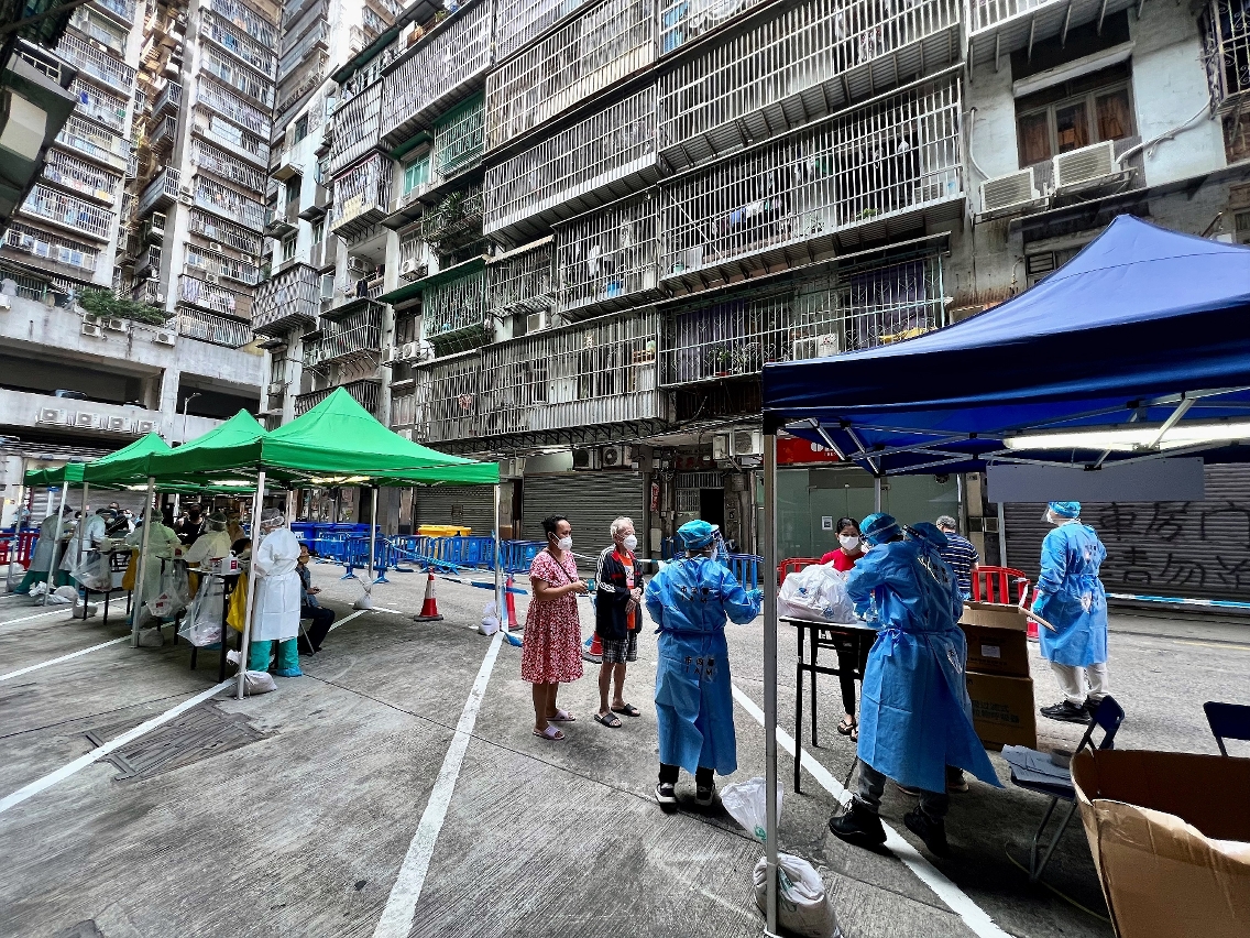 市政署聯同治安警察局及社會工作局組成維生支援小組,已對新增的紅碼區大廈開展住戶調查,掌握實際居民數量及基本需要,以便供應生活物資。同時,協助衛生局有序地分批安排圍封大廈每名居民接受病毒核酸篩查採樣。
