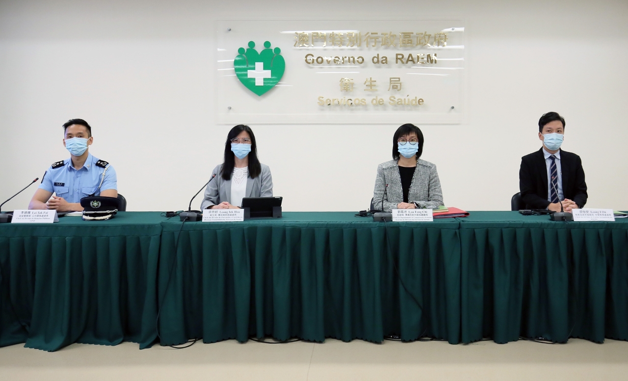 新型冠狀病毒感染應變協調中心11月3日舉行記者會,旅遊局傳播及對外關係廳劉鳳池廳長、衛生局疾病預防及控制中心傳染病防控處梁亦好處長、教育及青年發展局中學教育處梁怡安處長、治安警察局公共關係處李德輝處長分別介紹了本澳的整體防疫情況。