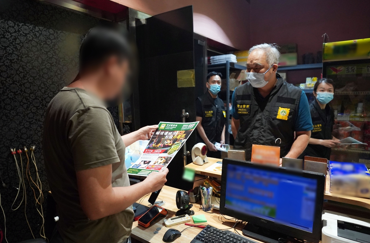 世界盃足球比賽正熱烈進行,為預防和打擊非法足球博彩活動,司法警察局展開巡查及相關防罪宣傳工作,提醒公眾切勿經營或參與非法足球博彩,否則須負刑責。
