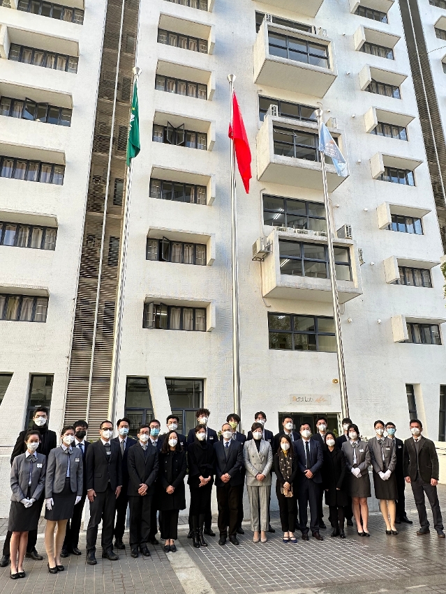 2022年12月20日,澳門旅遊學院為慶祝澳門回歸祖國二十三周年,於氹仔校區舉行升國旗儀式,學院領導、部門主管、學生和員工出席。中華人民共和國國旗、澳門特別行政區區旗與學院校旗在激昂的國歌聲中冉冉升起,隨風飄揚。