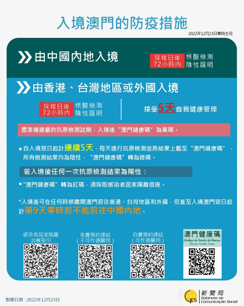 【圖文包】最新入境澳門的防疫措施 (2022/12/23)