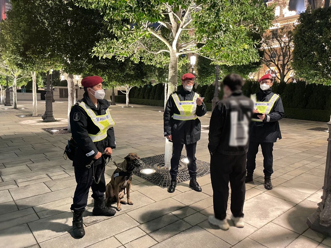 在警察總局統籌下,治安警察局於昨(17)日繼續開展「冬防行動2023」,確保本澳在歲晚及春節期間的良好治安環境。治安警察局轄下澳門警務廳、海島警務廳、交通廳、情報廳及特警隊聯同警犬組合共派出93名人員,分別在澳門各區巡查多間賓館,以及在路氹城金光大道娛樂場周邊一帶截查可疑人士,同時在各區進行查車行動,以預防及打擊各種不法行為和犯罪活動。