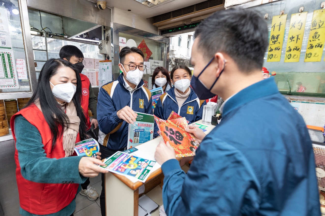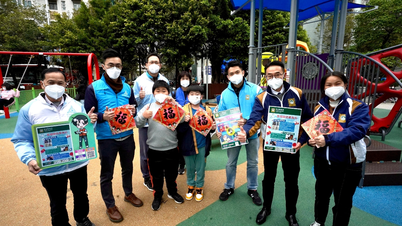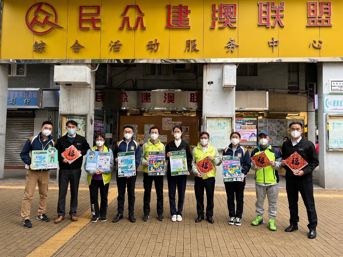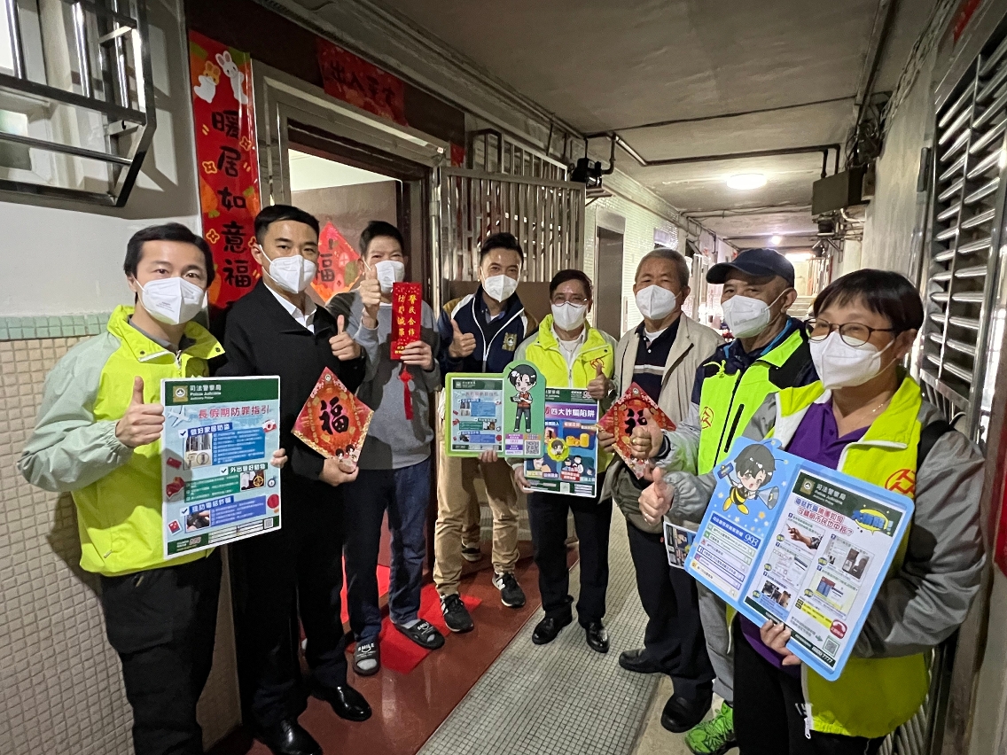 會後,司警局人員聯同各社團的“司警局大廈防罪之友"會員前往各區的住宅大廈、工商業大廈、休憩區、巴士站及商舖進行冬防宣傳,向居民、商戶及物業管理人員講解冬防資訊。
