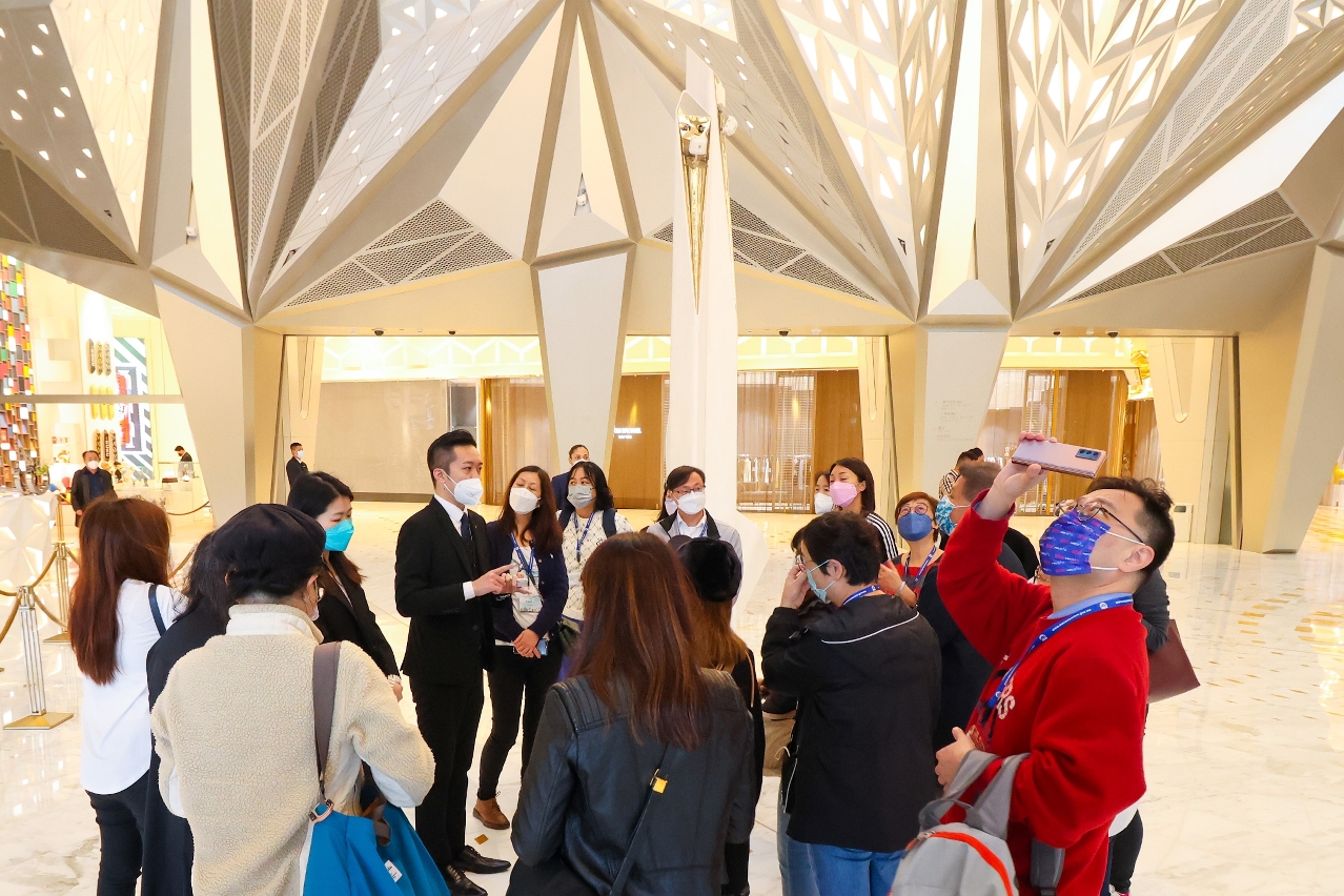 考察團於昨今兩天分組參觀世界遺產“澳門歷史城區”、體驗澳門大賽車博物館、“時空穿梭‧遊歷三巴” —— 大三巴牌坊沉浸式數字體驗展、澳品薈、氹仔舊城區,以及多個大型度假村酒店及設施:上葡京、The Karl Lagerfeld、永利皇宮、美獅美高梅、摩珀斯、澳門倫敦人、澳門銀河、新濠天地的Artelli多維藝術空間及澳門威尼斯人的teamLab超自然空間等。考察團成員透過參觀澳門旅遊設施、親身體驗澳門“旅遊+”元素,將澳門旅遊資源及遊歷經驗分享給香港居民,整合澳門最新旅遊產品推介及銷售予香港居民。
