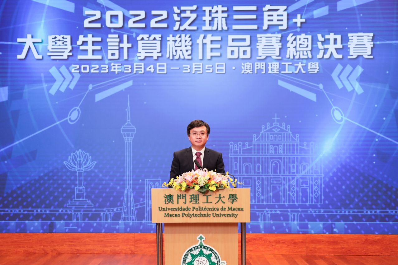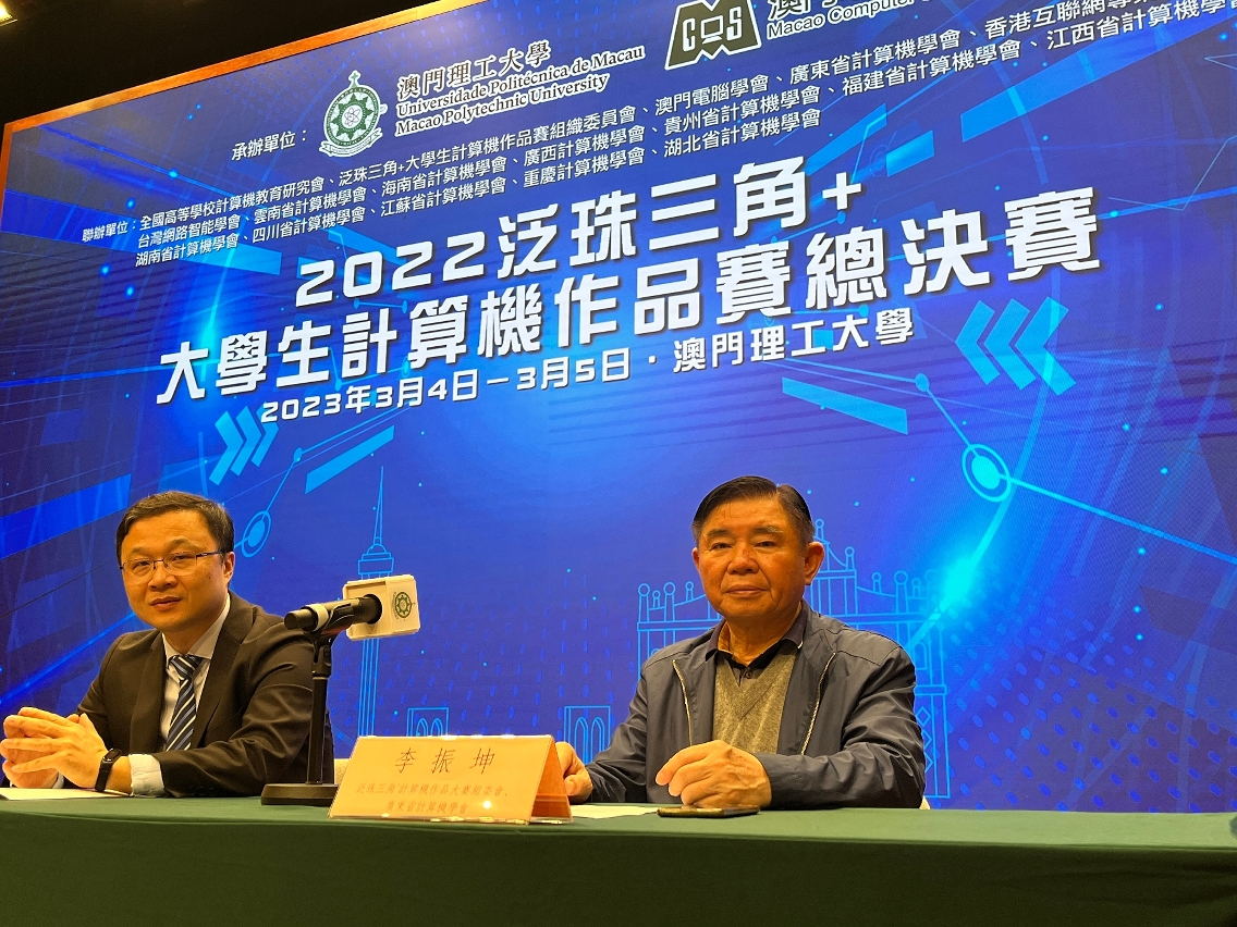 “2022泛珠三角+大學生計算機作品賽總決賽”之開幕、比賽、閉幕典禮以線上及線下形式舉行,中國科學院院士陳國良、澳門理工大學校長嚴肇基、澳門電腦學會會長溫錦明、澳門理工大學應用科學學院代院長林燦堂、泛珠三角+計算機作品賽組委會副主席、廣東省計算機學會副理事長李振坤,泛珠三角大學生計算機作品賽組委會副主席、全國高等學校計算機教育研究會副理事長朱慶生等共同主禮。
