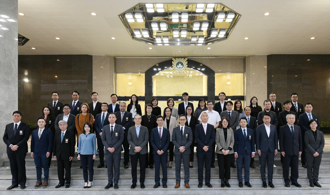 3月8日下午,澳門禁毒委員會關注青少年毒品問題工作小組、禁毒法執行及跟進工作小組共25名成員,在委員會副主席、社會工作局局長韓衛帶領下到訪司警局,與局長薛仲明、副局長賴文威和蘇兆強、刑事調查廳廳長薛專耀及毒品罪案調查處處長余光輝等會面交流。