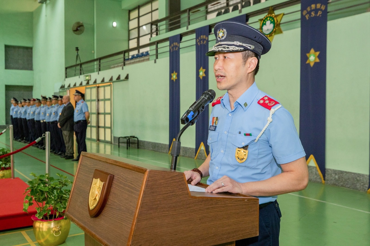 黃偉鴻代局長在儀式上祝賀一眾警員正式成為治安警察局的新力軍;寄語他們要廉潔守法,盡忠職守;以維護法紀、打擊犯罪、保障市民生命及財產的安全為己任,履行維持治安、服務社會的崇高使命。