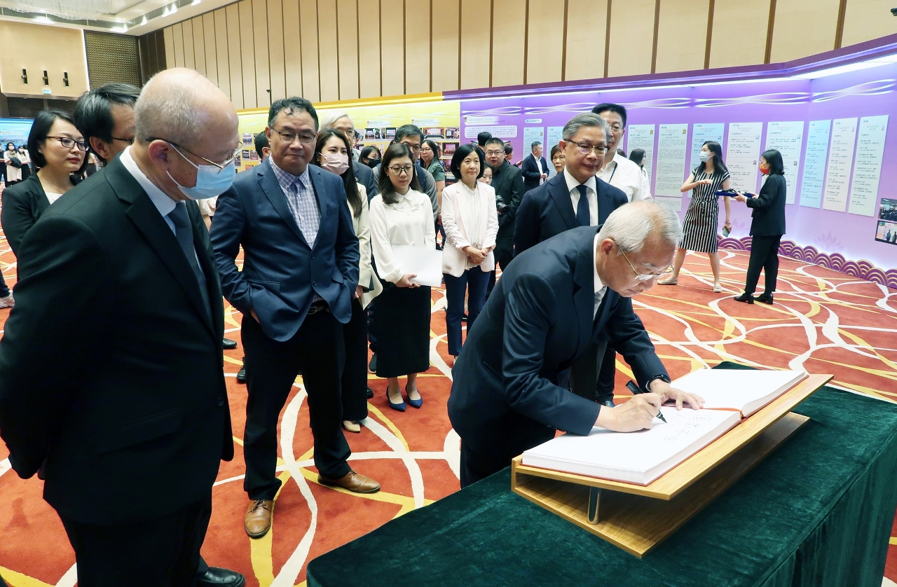 澳門大學組織學生和教職員參觀由澳門特別行政區政府與中央人民政府駐澳門特別行政區聯絡辦公室合辦的“全民國家安全教育展”,在澳大校董會主席林金城、代校長許敬文和副校長莫啓明的率領下,多角度認識國家安全體系的建設與發展。