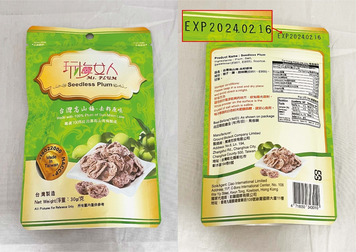 檢出含過量防腐劑的預包裝西梅,產品名稱為“PITTED DRIED PLUMS (PITTED PRUNES) ”,品牌名稱為“Mariani”,淨重18安士,包裝上標示之最佳食用期限為2024年5月,檢出每公斤含652毫克山梨酸,超出本澳第7/2019號行政法規《食品中防腐劑及抗氧化劑使用標準》的規定。而檢出含過量甜味劑的預包裝高山梅,產品名稱為“台灣高山梅-去籽原味”,品牌名稱為“玩梅女人”,淨重為30克,包裝上顯示之“此日期前最佳”為 2024年2月16日,檢出每公斤含14,400毫克阿斯巴甜,超出本澳第 12/2018號行政法規《食品中甜味劑使用標準》的規定。