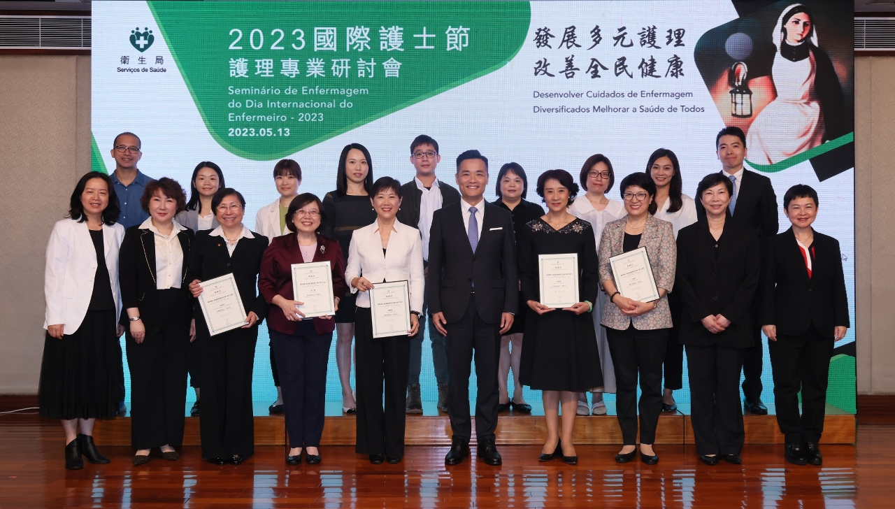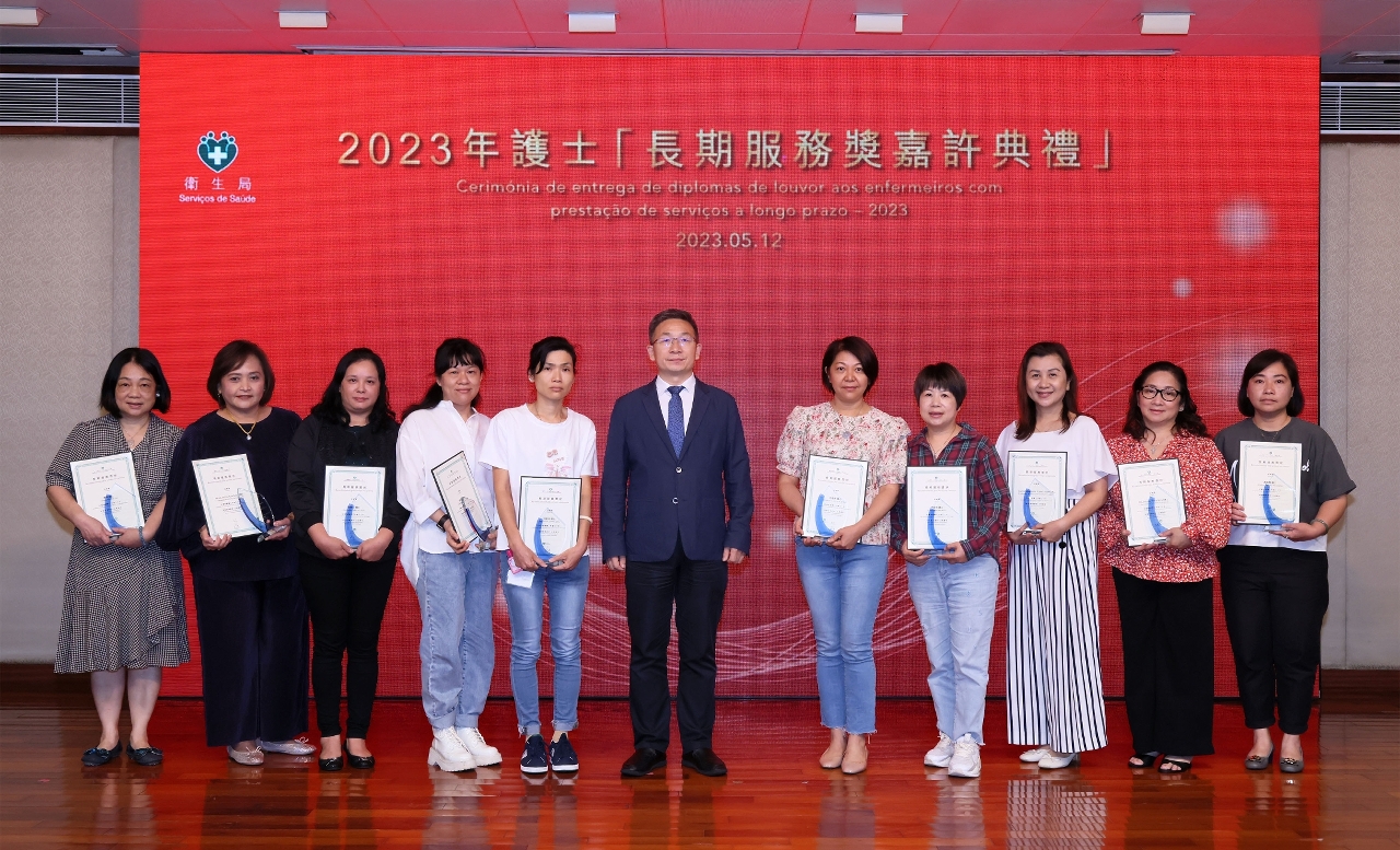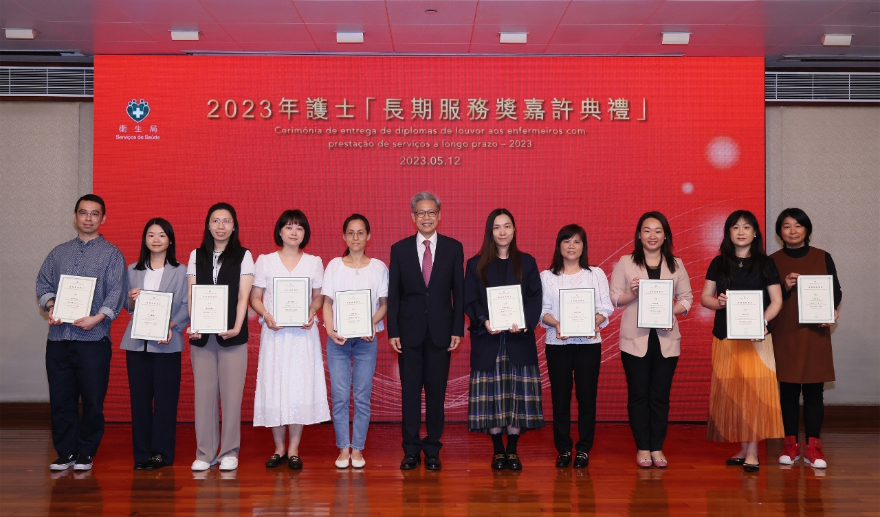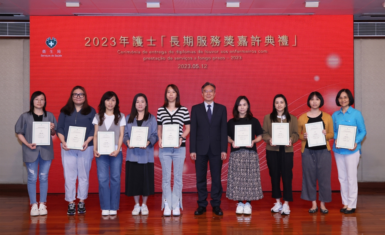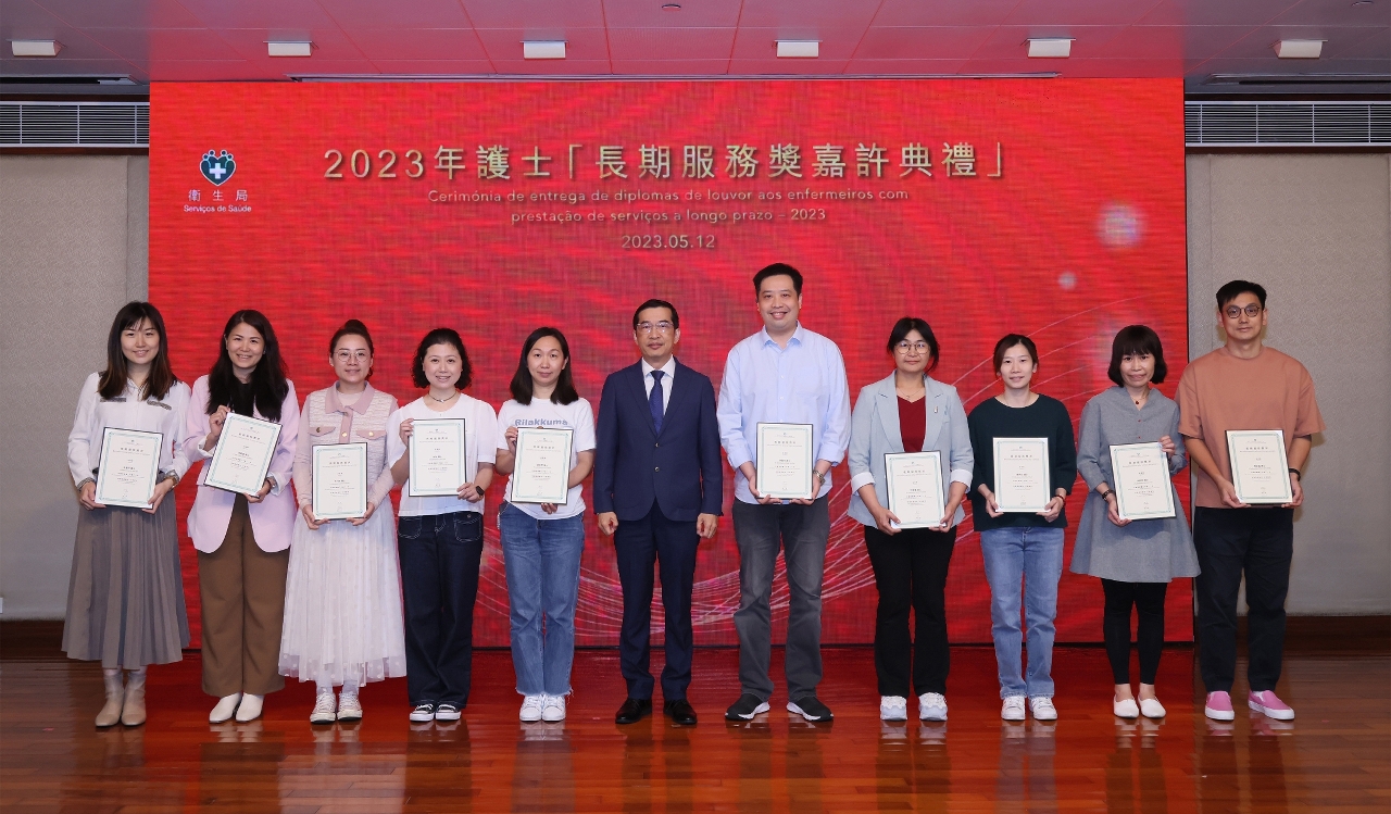 藉著2023年度國際護士節,衛生局於5月12和13日舉辦了“長期服務獎嘉許典禮”和“國際護士節護理專業研討會”慶祝活動。中央人民政府駐澳門特別行政區聯絡辦公室宣傳文化部田小平副部長,衛生局羅奕龍局長、郭昌宇副局長、鄭成業副局長、陳永華副局長等共同出席了“長期服務獎嘉許典禮”並擔任頒奬嘉賓,嘉許服務滿20年的56位護士及服務滿30年的22位護士,以示特區政府肯定和讚揚他們為護理工作作出的貢獻。