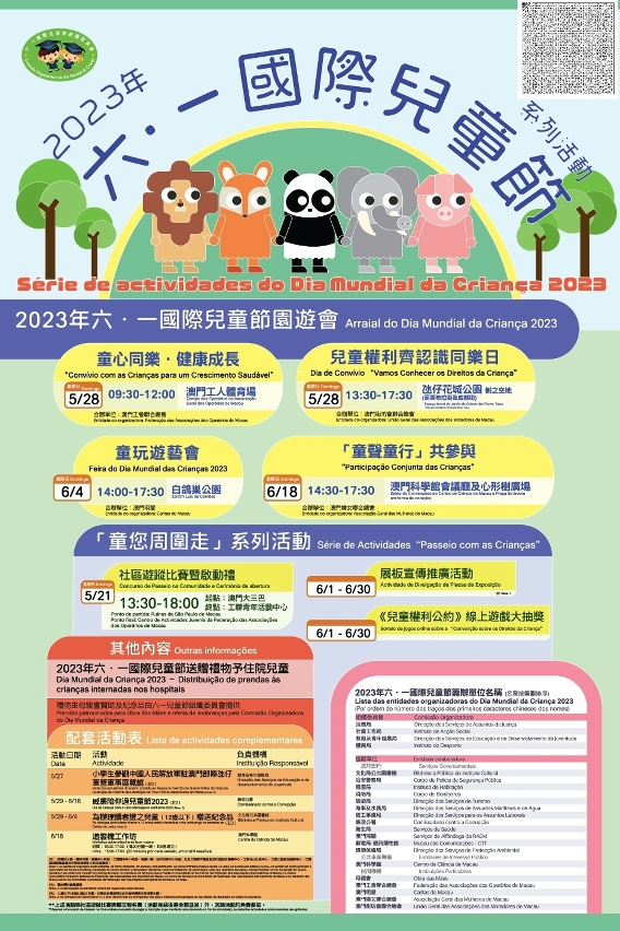 為了慶祝6月1日國際兒童節,多個政府部門、公共事業機構及民間團體共同舉辦2023年“六.一國際兒童節”系列活動,主題為“兒童權利公約"中的參與權,藉以喚起社會關注兒童權利和福祉,同時讓市民一同感受節日氣氛,歡度兒童節。